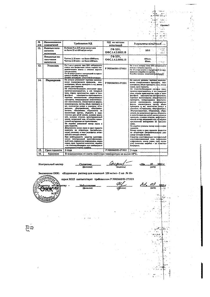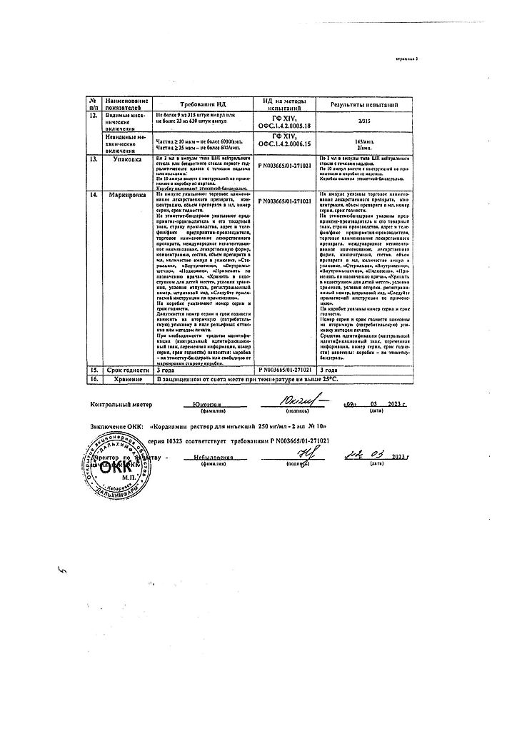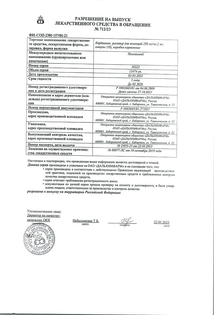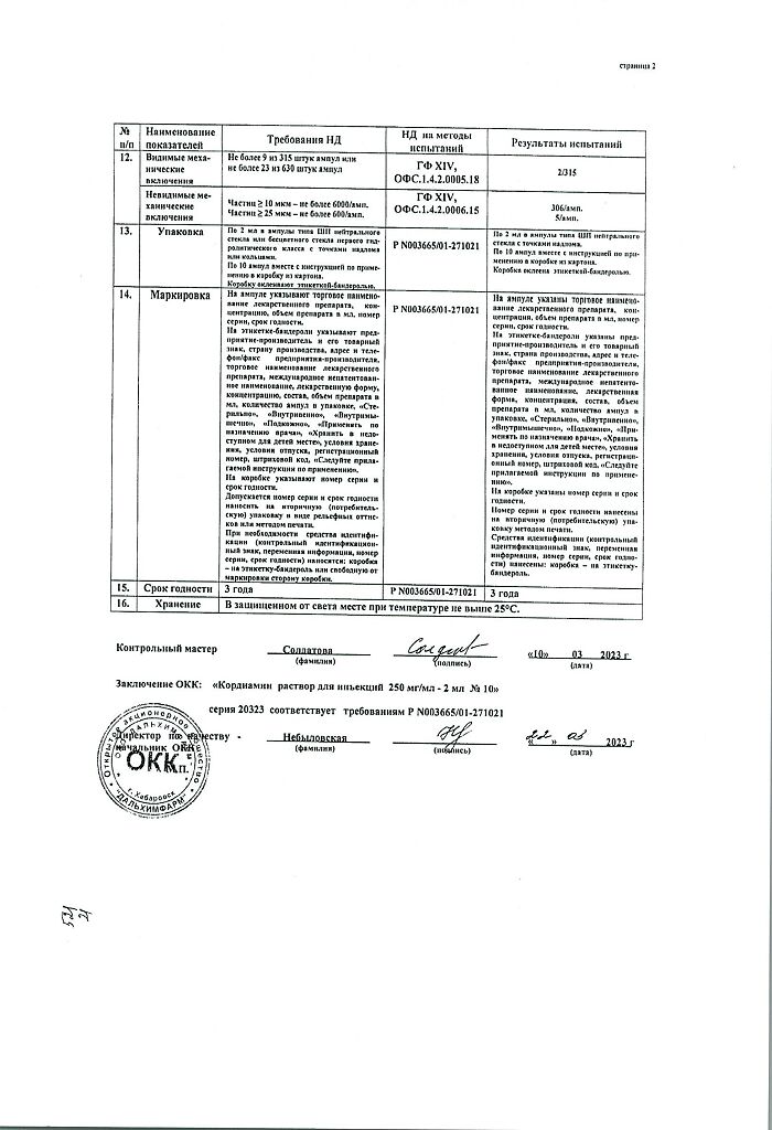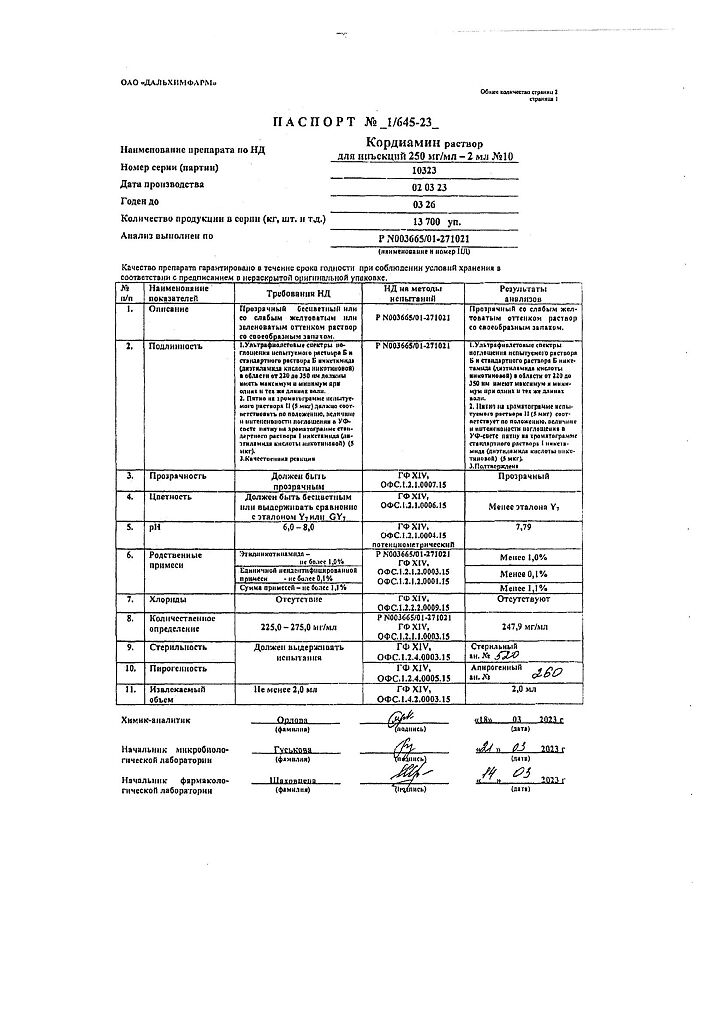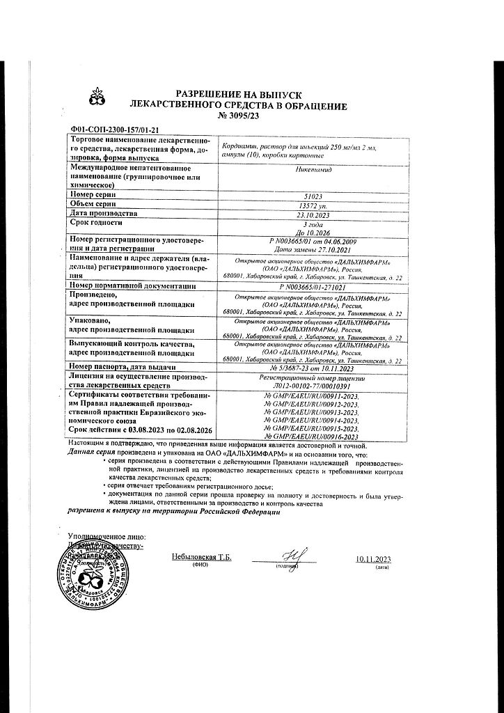 Документы Кордиамин раствор для инъекций 250 мг/мл 2 мл амп 10 шт
