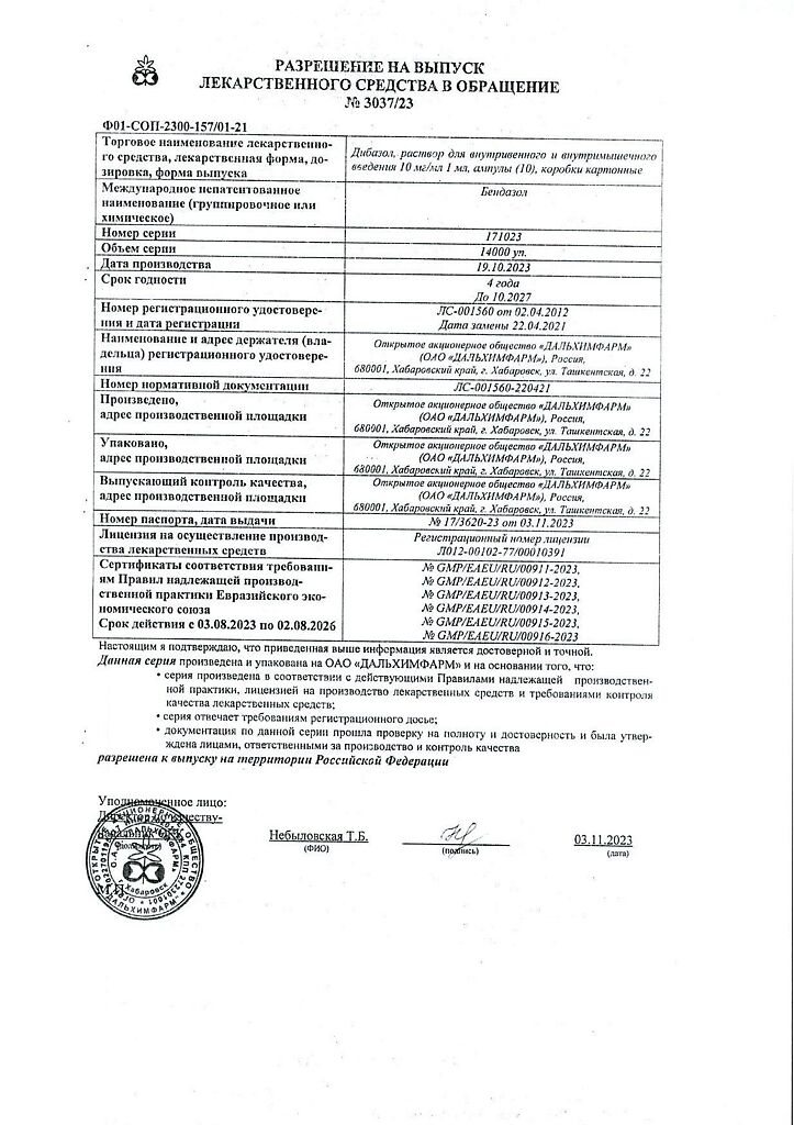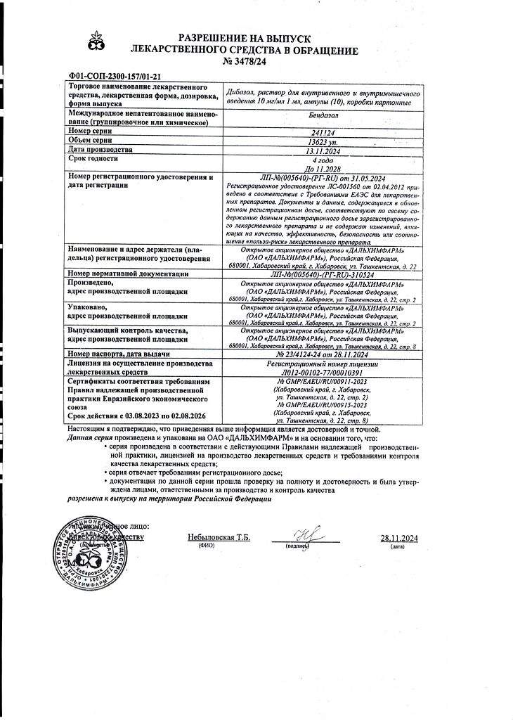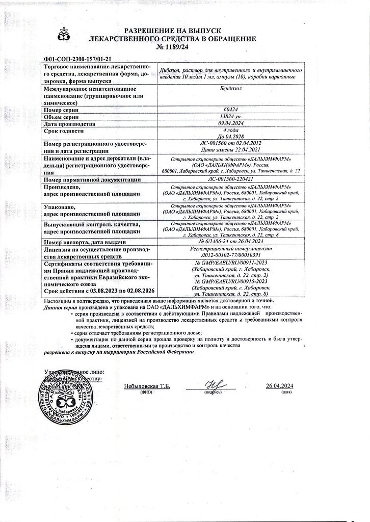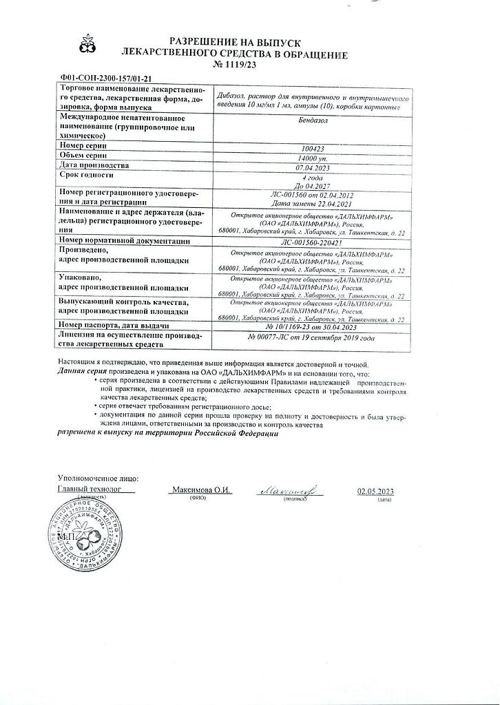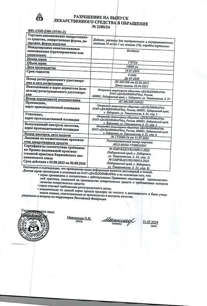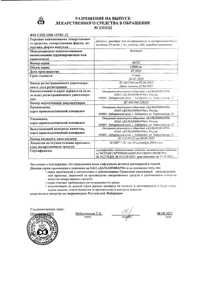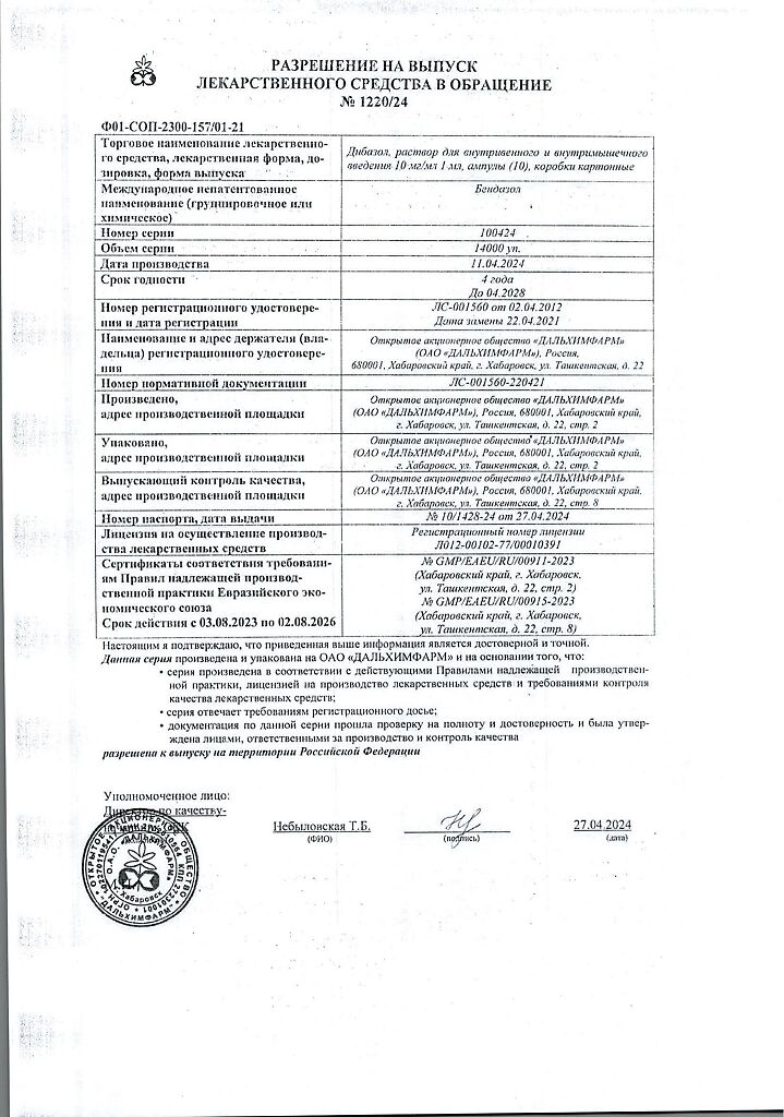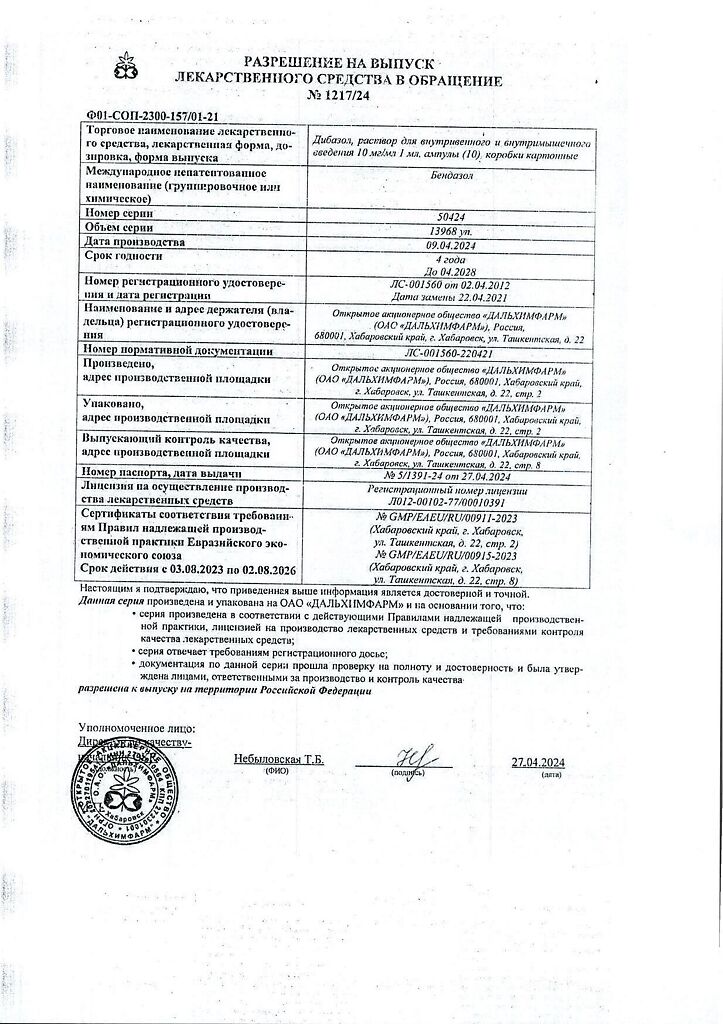Производитель: Дальхимфарм ОАО, Россия