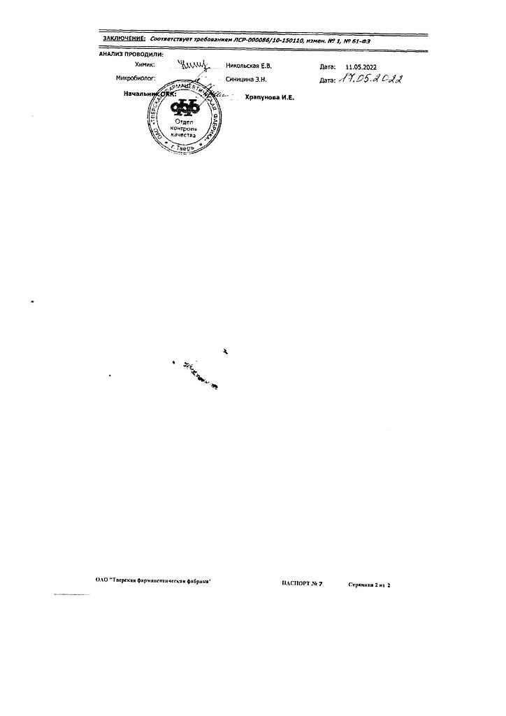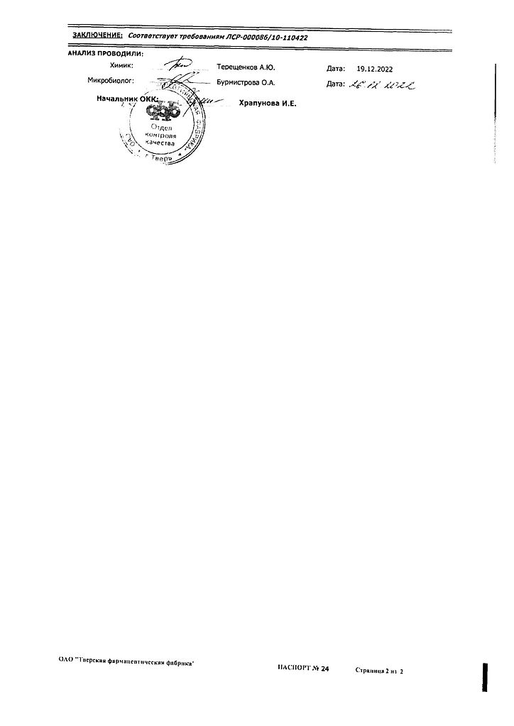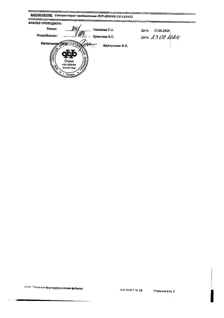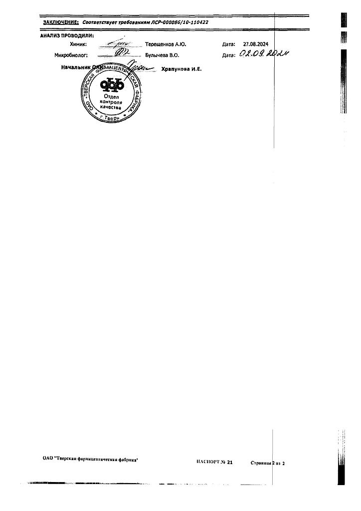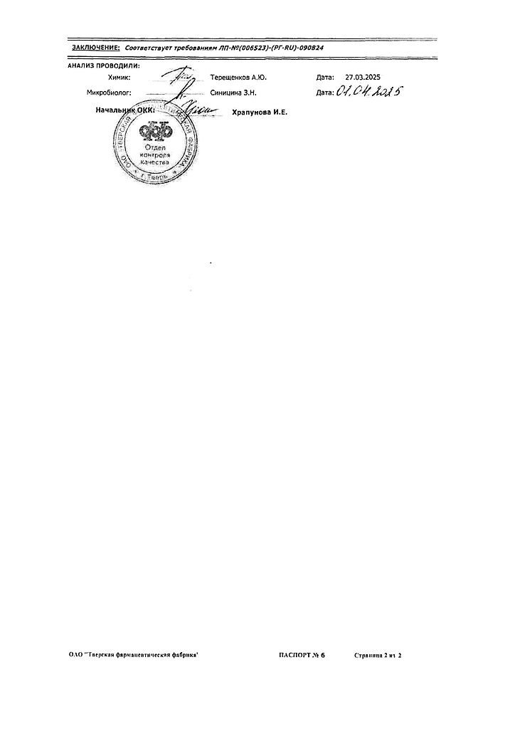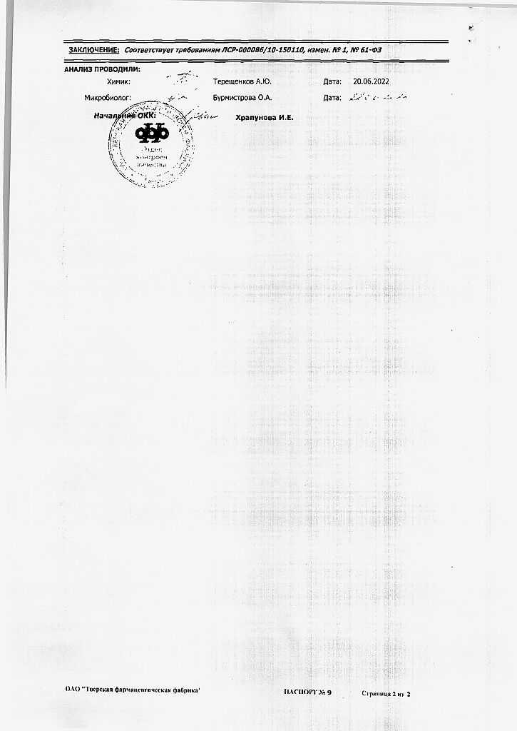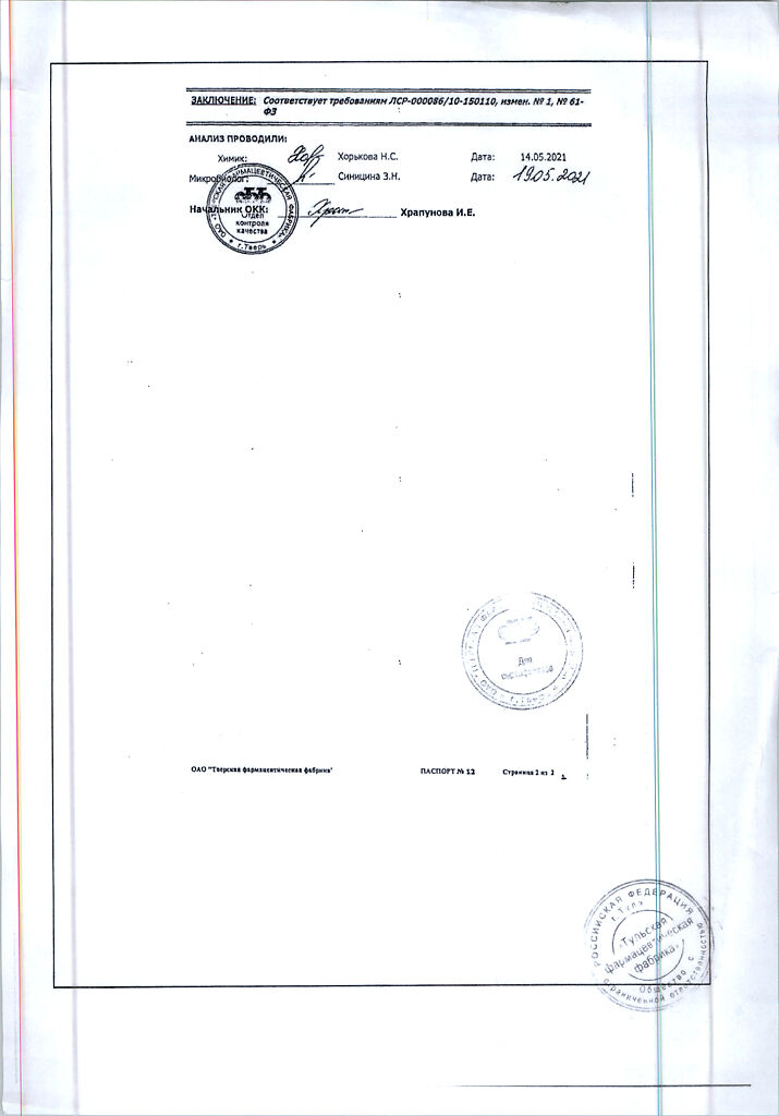 Производитель: Тверская фармфабрика, Россия