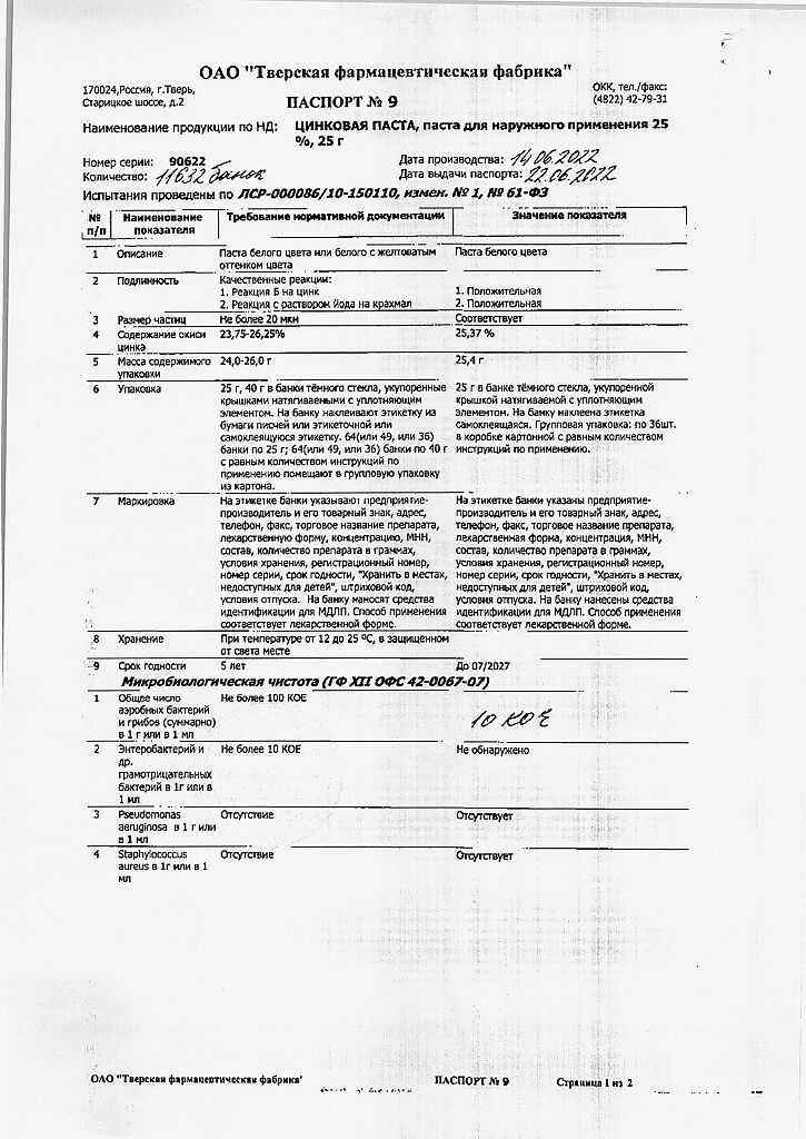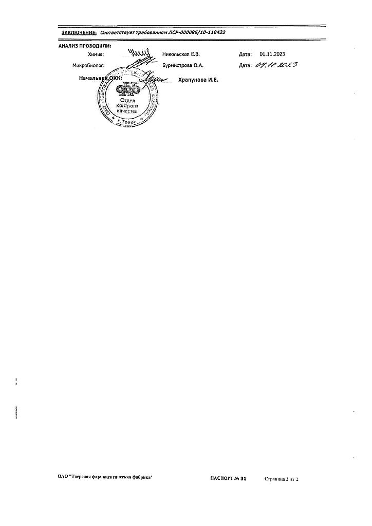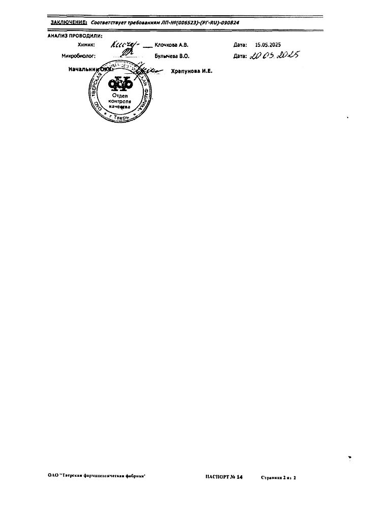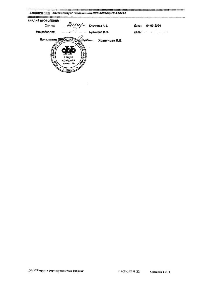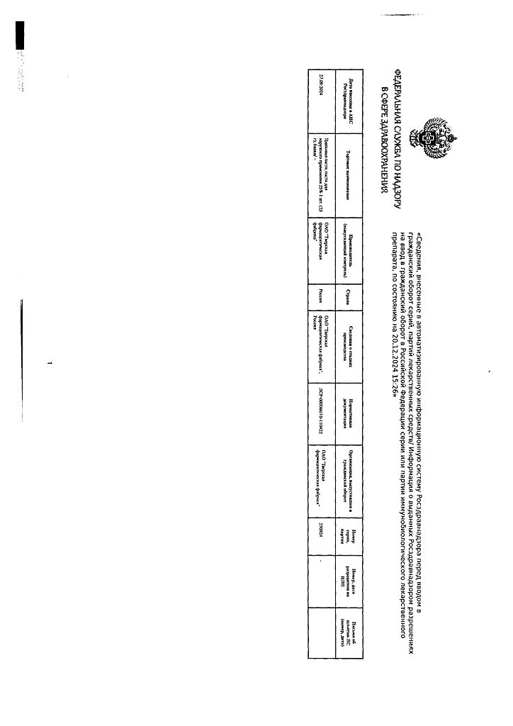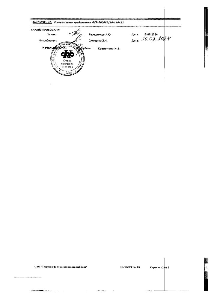 Производитель: Тверская фармфабрика, Россия