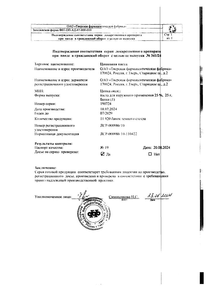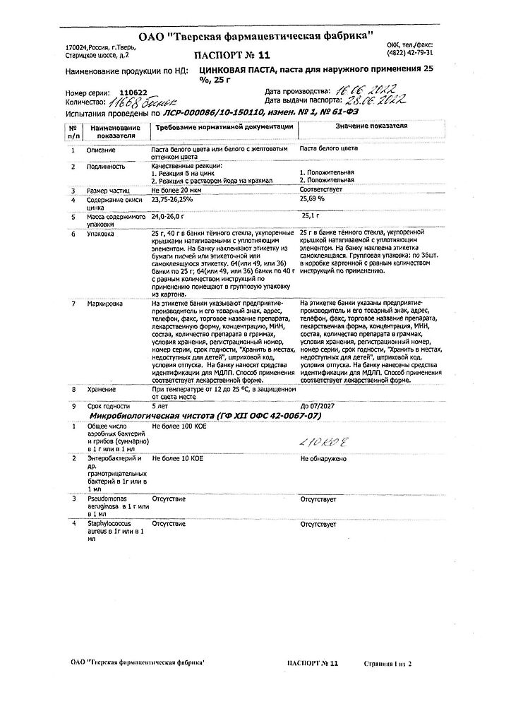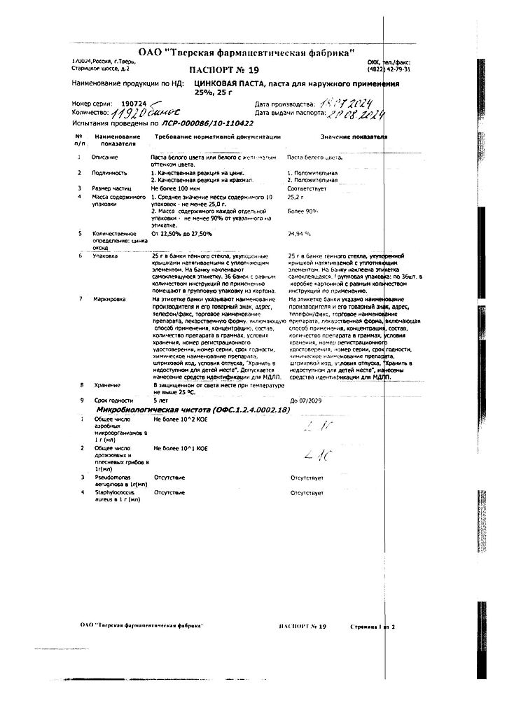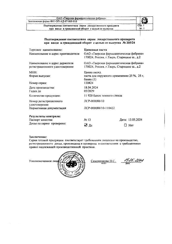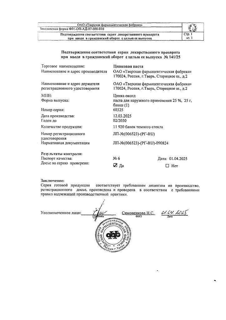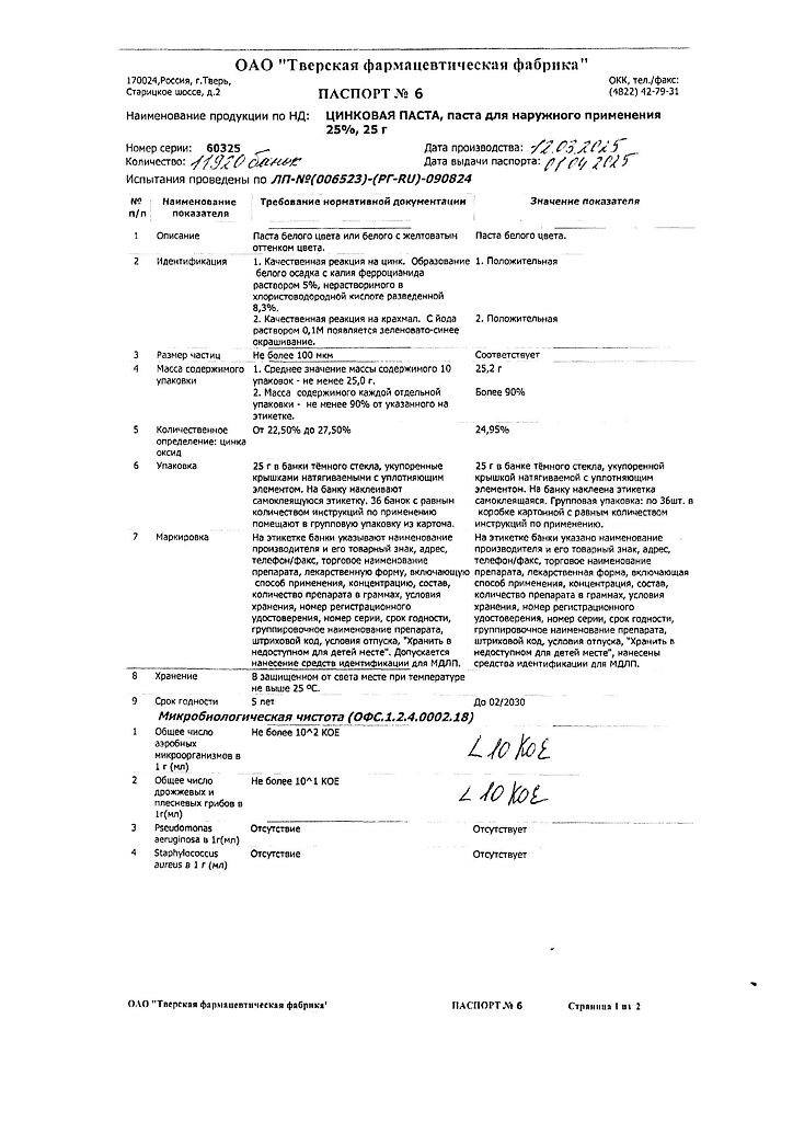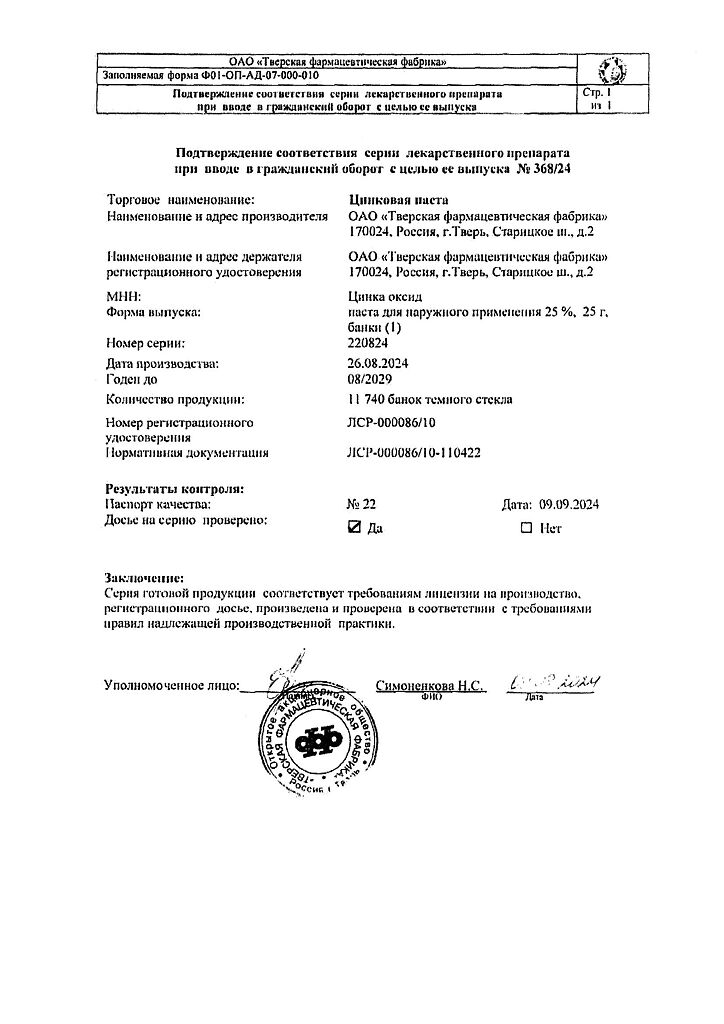 Производитель: Тверская фармфабрика, Россия