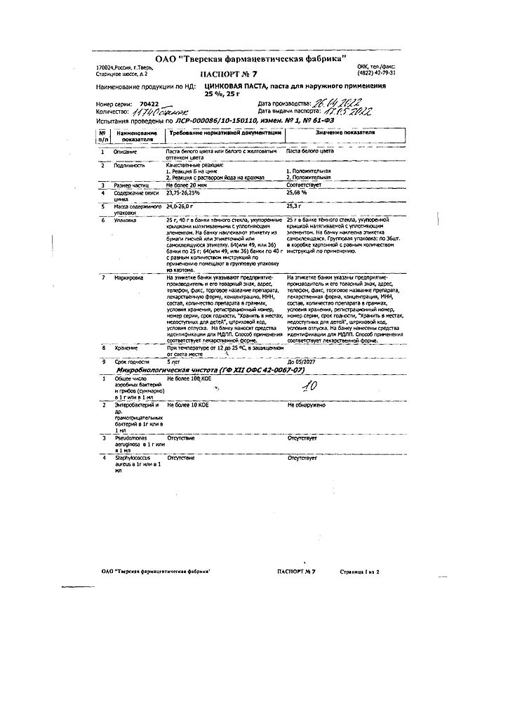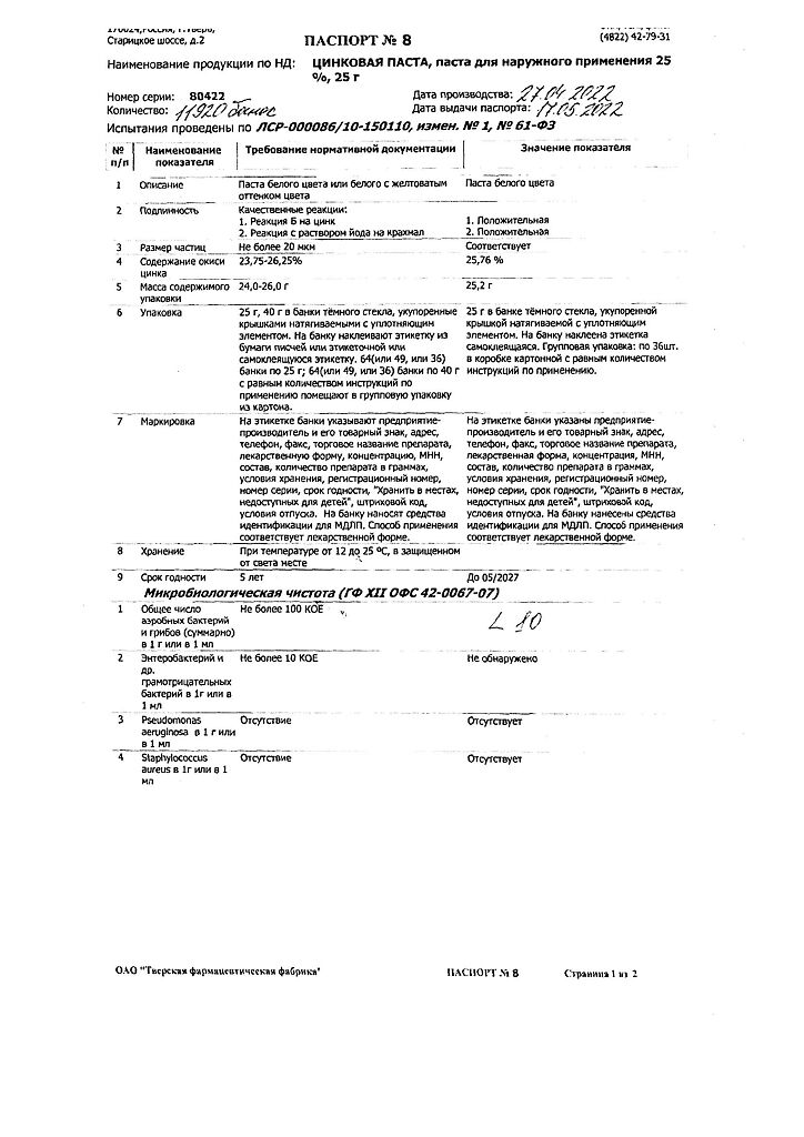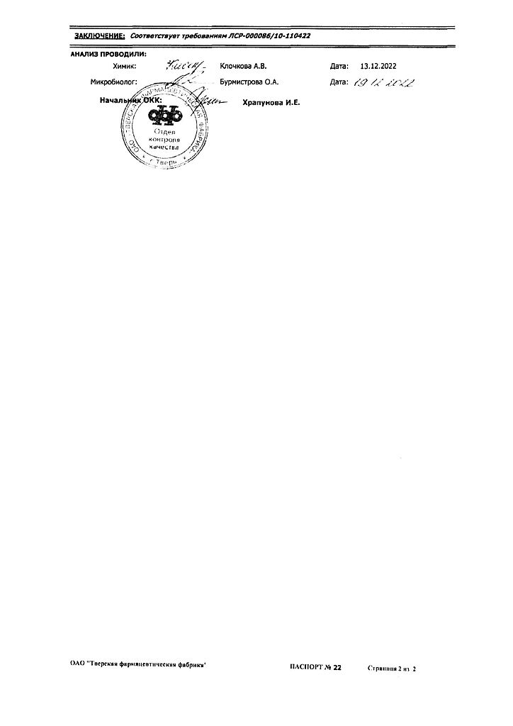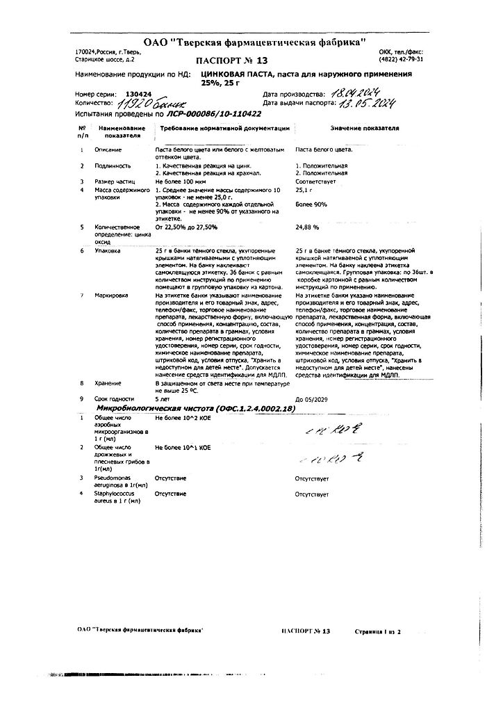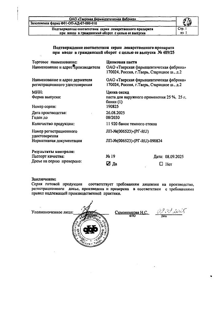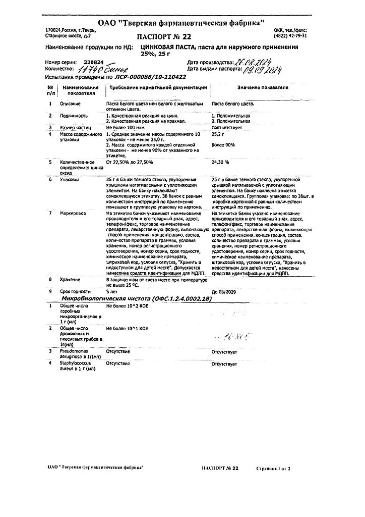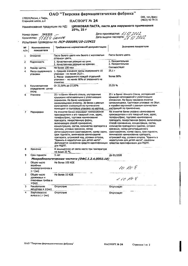 Производитель: Тверская фармфабрика, Россия