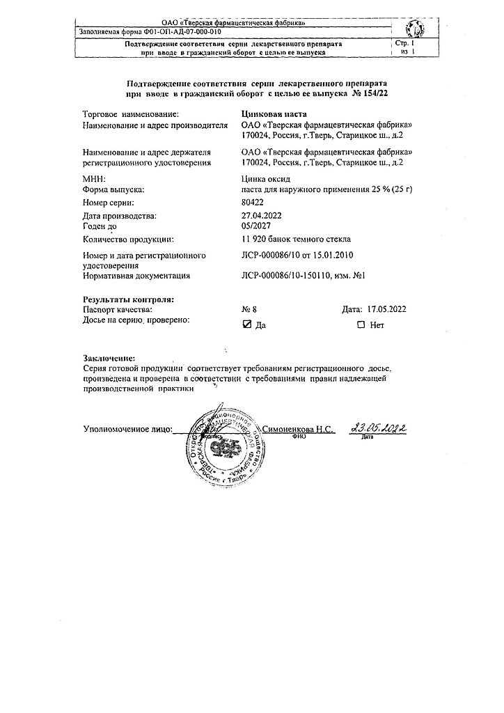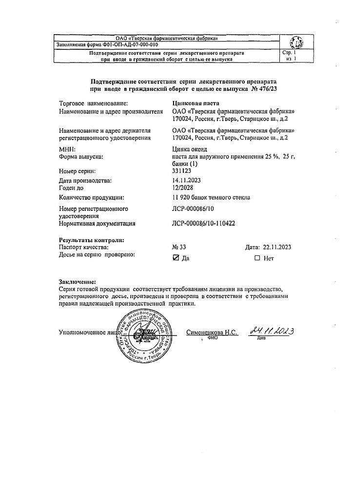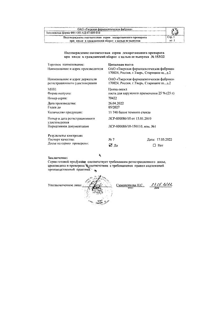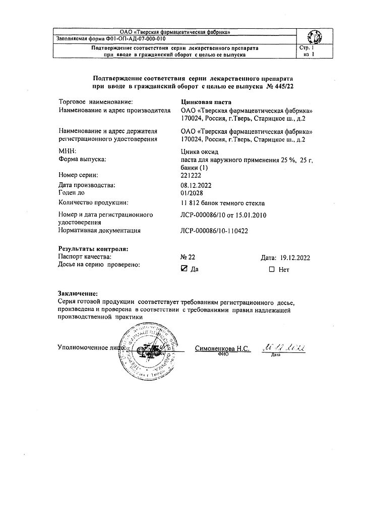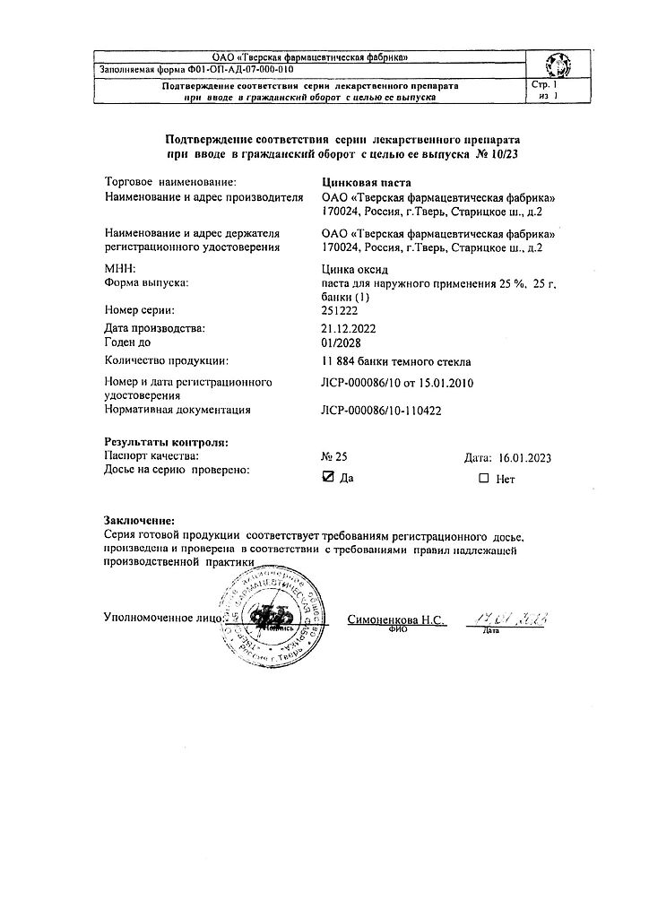 Действующее вещество: Цинка оксид