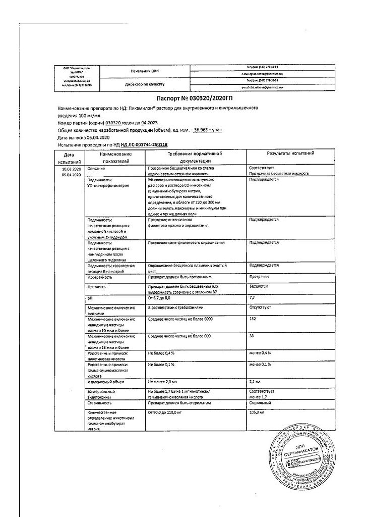 Действующее вещество: Никотиноил гамма-аминомасляная кислота