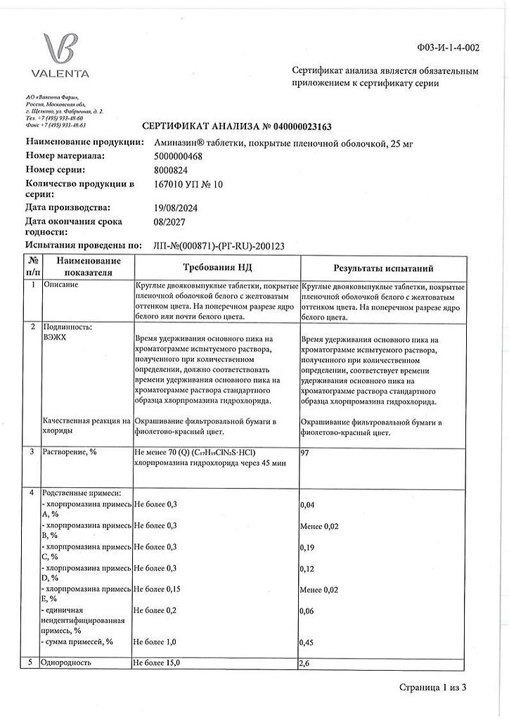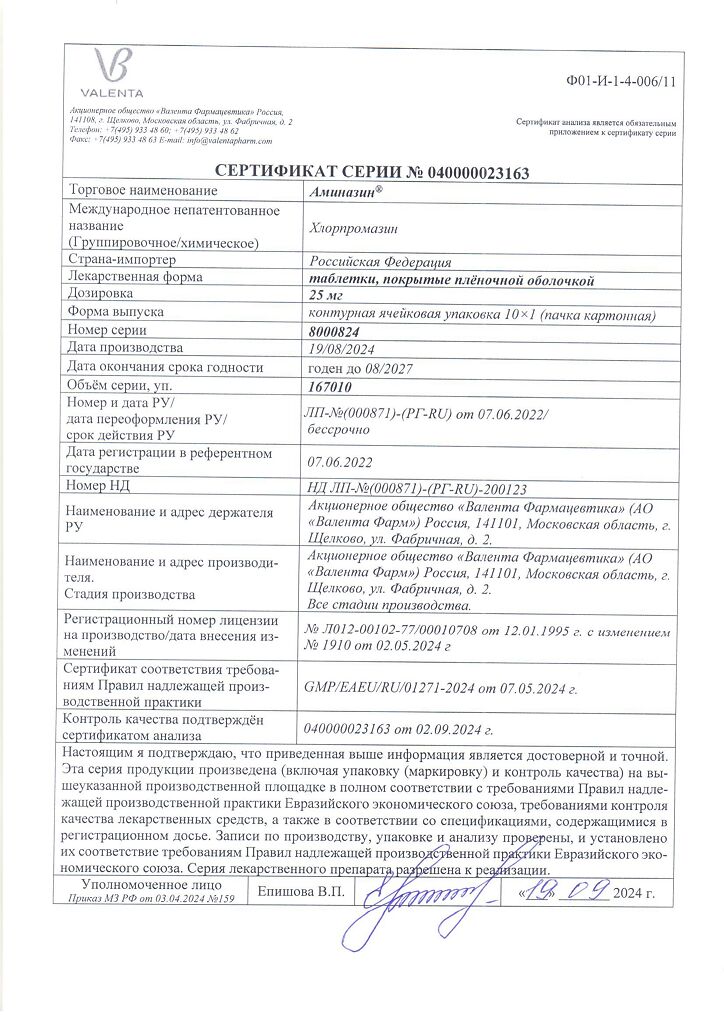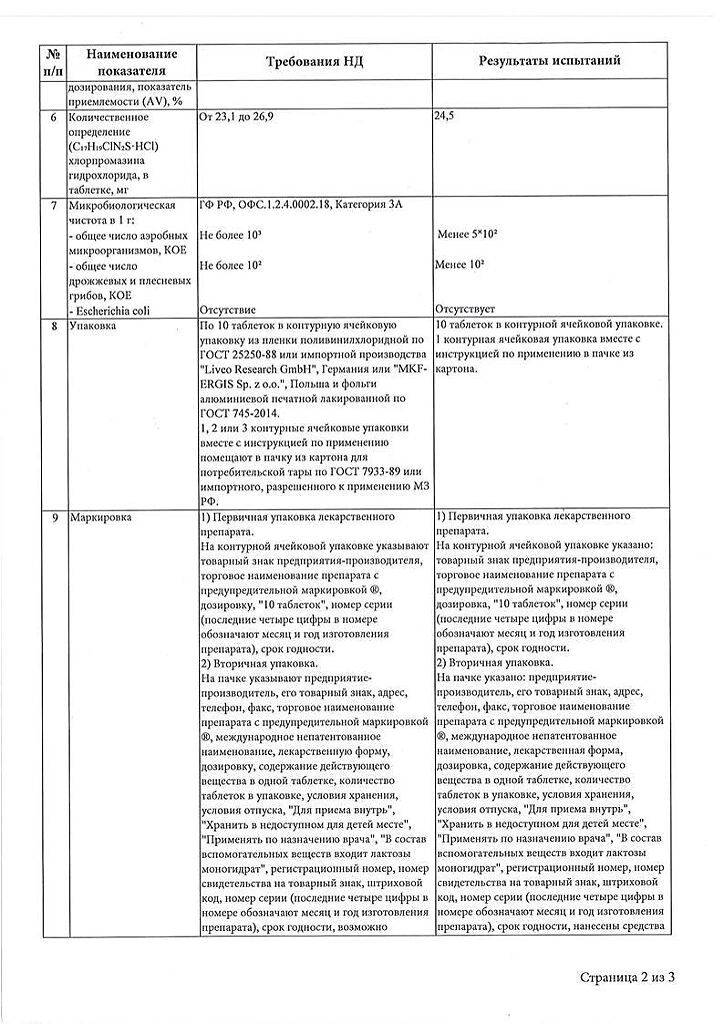 Документы Аминазин таблетки покрыт.плен.об. 25 мг 10 шт