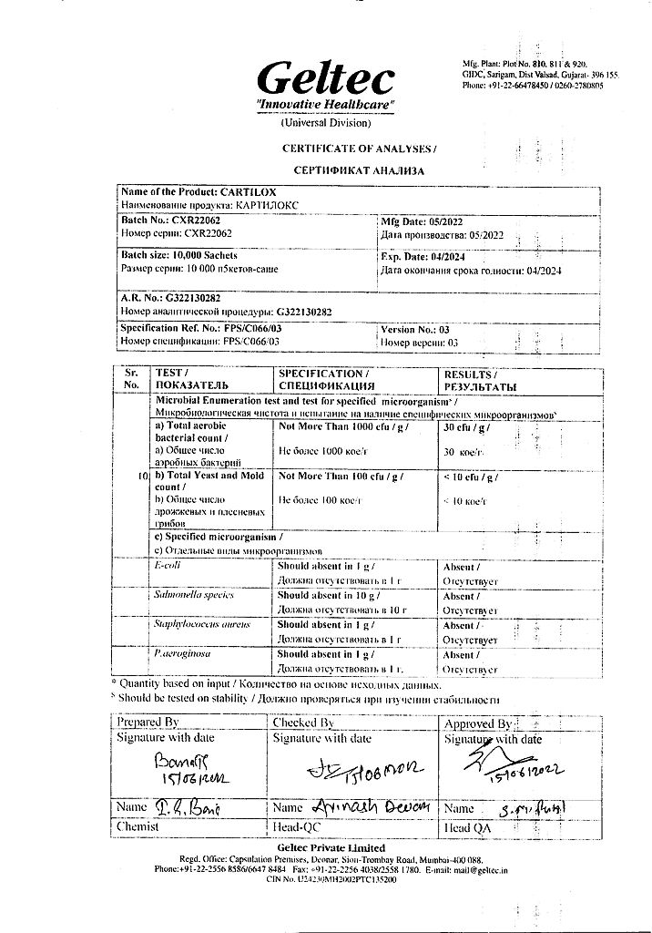 Картилокс пакеты-саше, 30 шт: 10 отзывов покупателей и фармацевтов