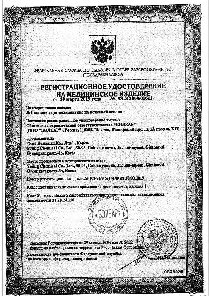 Гипоаллергенное клеевое покрытие обеспечивает надежную фиксацию пластырей и не раздражает чувствительную кожу.