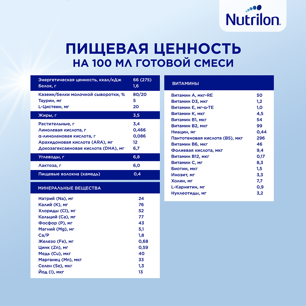 В 100 мл готовой смеси содержится: белки-1,7 гр, жиры -3,1 гр, углеводы - 8,1гр.