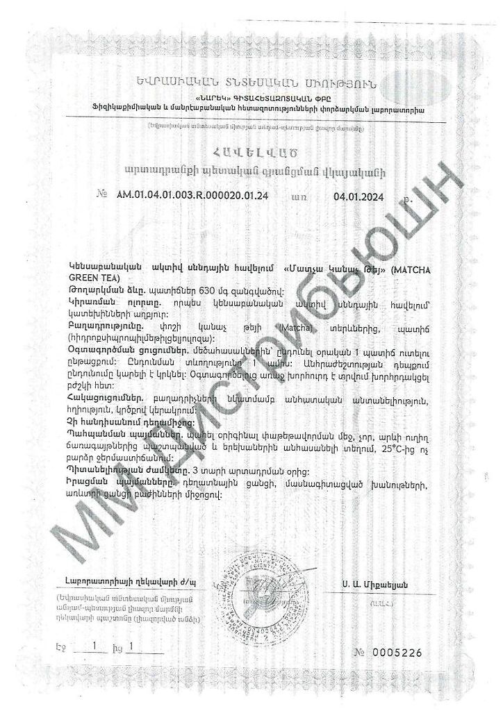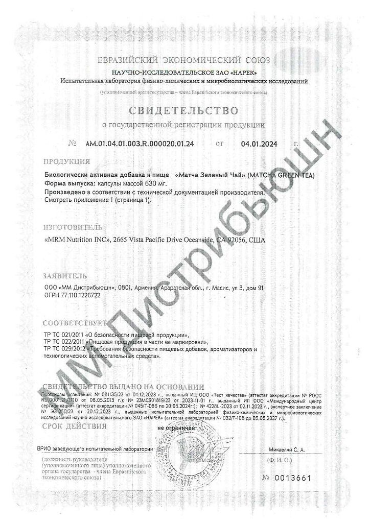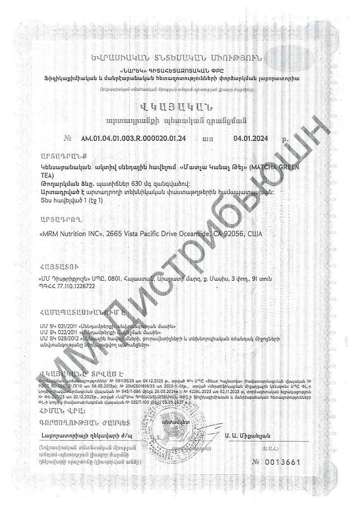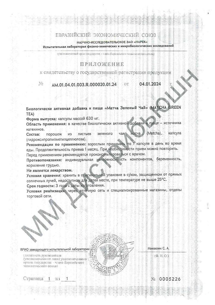 MRM Матча Зеленый Чай / Matcha Green Tea капсулы массой 630 мг 60 шт