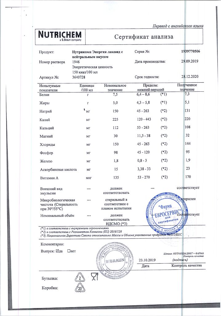 Нутрикомп Энергия ликвид пластиковая бутылка 500 мл 1 шт