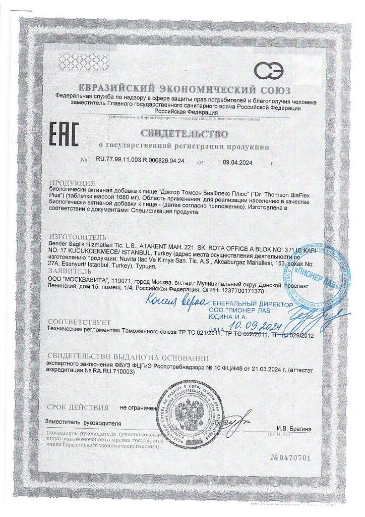 Документы Dr. Thomson BiaFlex Plus / Доктор Томсон БиаФлекс Плюс таблетки массой 1680 мг 60 шт