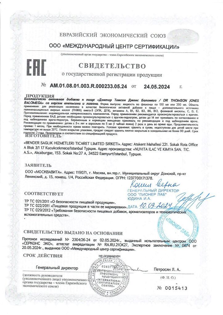 Документы Dr. Thomson Jones Balomega / Доктор Томсон Джонс Баломега со вкусом апельсина и лимона жидкость во флаконах по 150 мл 1 шт