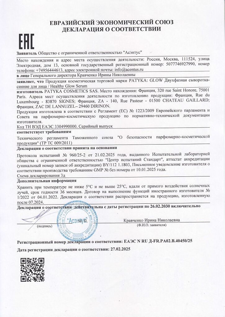 Документы Патика/Patyka Glow Подарочный набор Perfect Skin Ritual Двухфазная сыворотка-сияние 30 мл+ Маска для лица 50 мл 1 уп