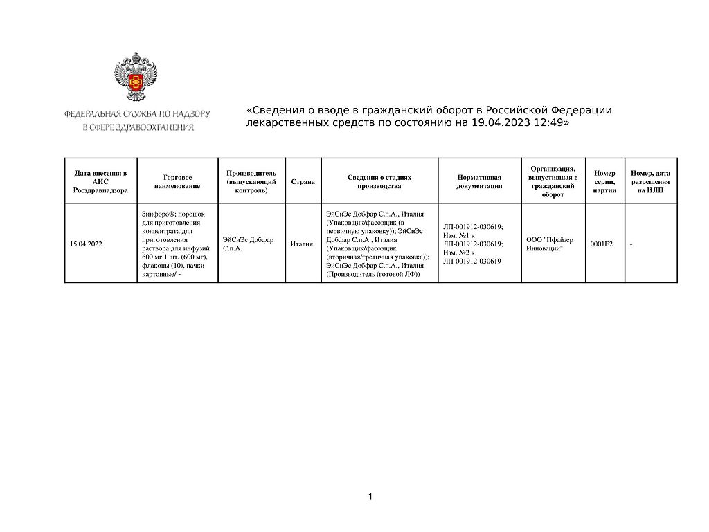 • Цена на Зинфоро в аптеках Тынды от 29 600 руб.