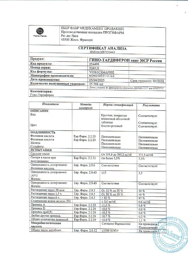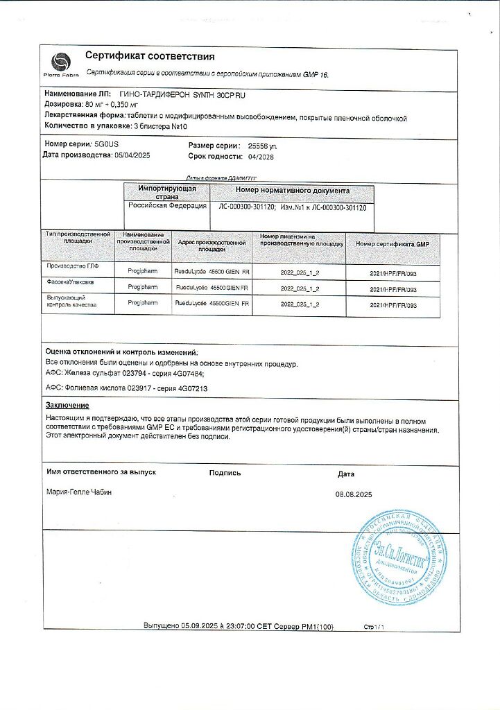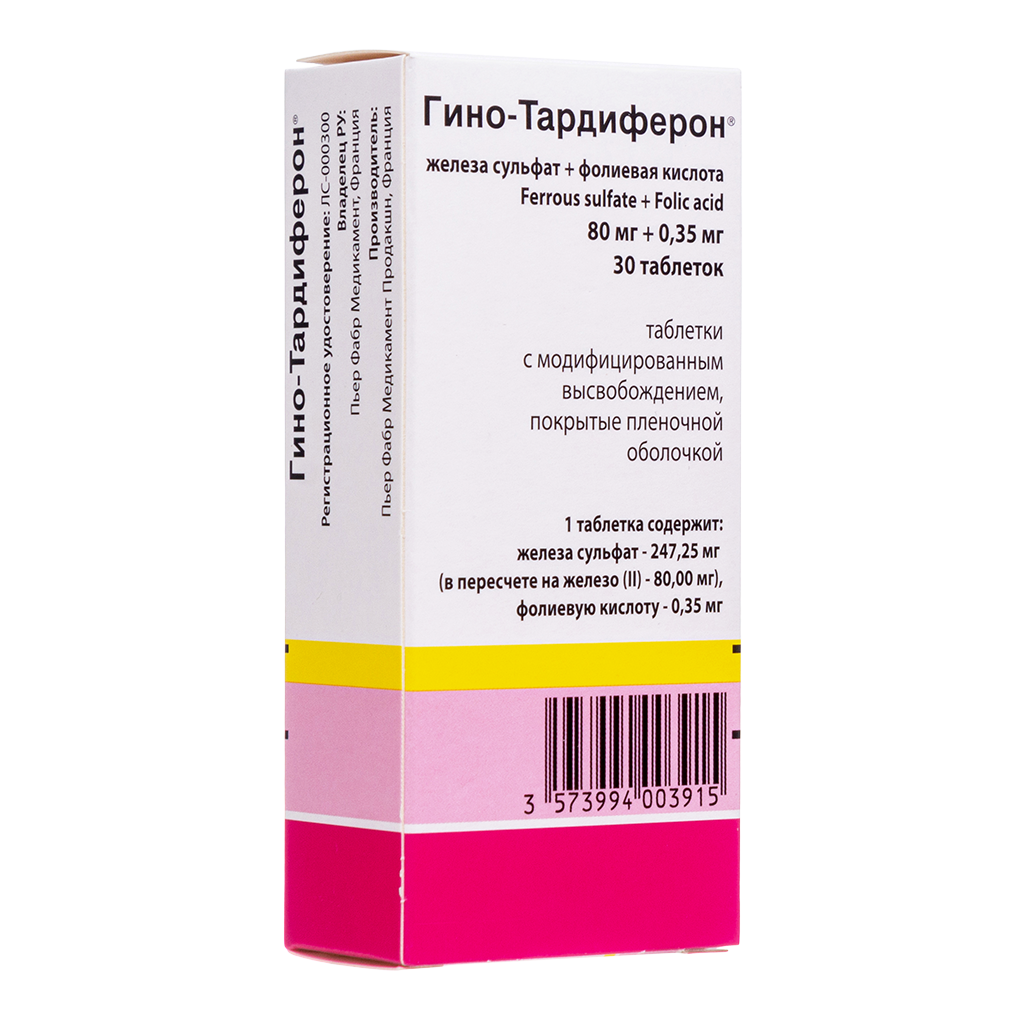 Гино-Тардиферон таблетки с модифицированным высвобождением покрыт.плен.об. 80 мг+0,35 мг 30 шт