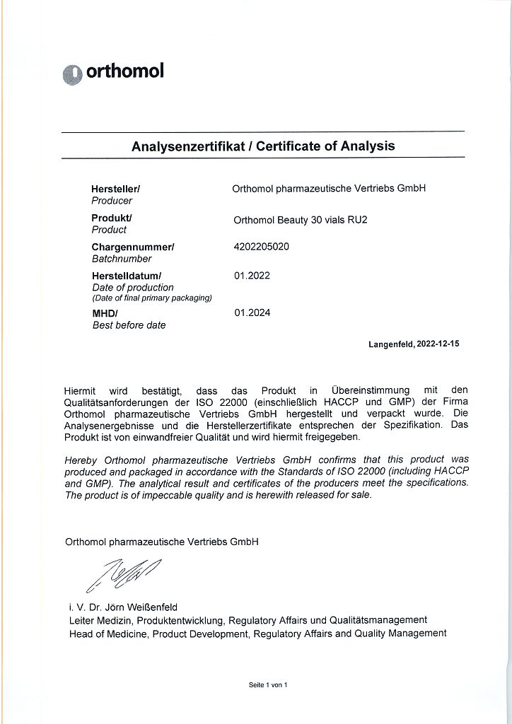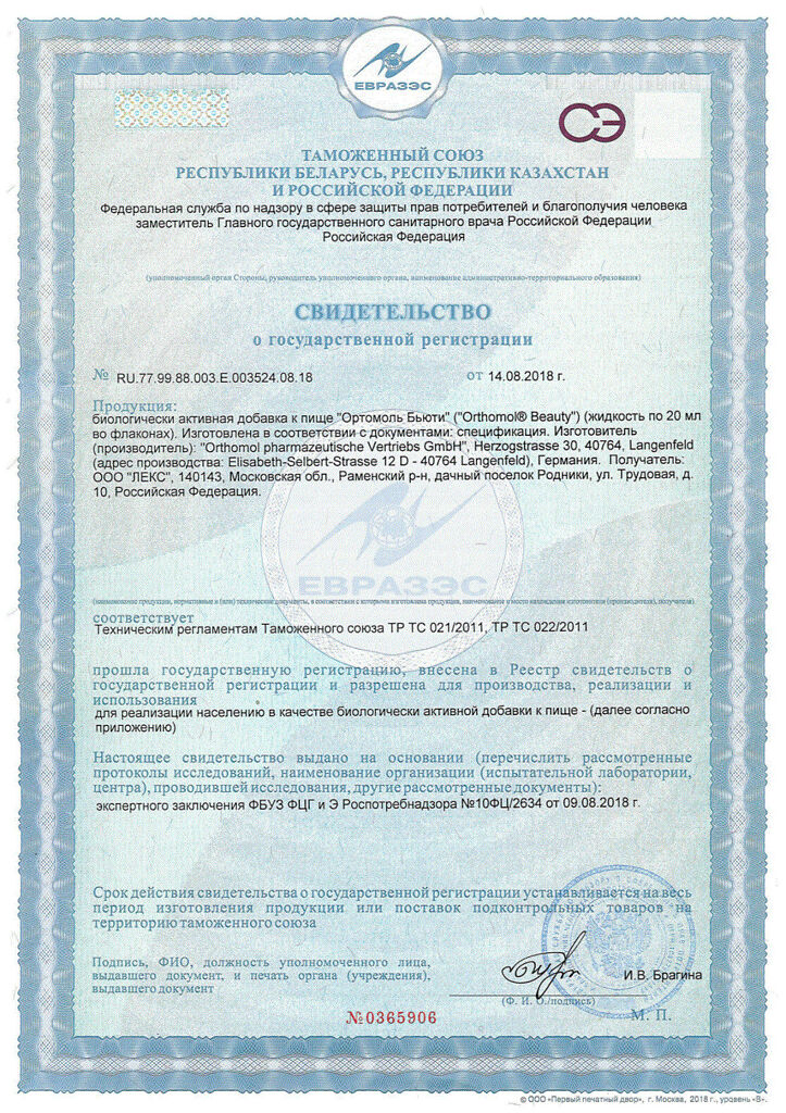 Документы Ортомол Бьюти/Orthomol Beauty