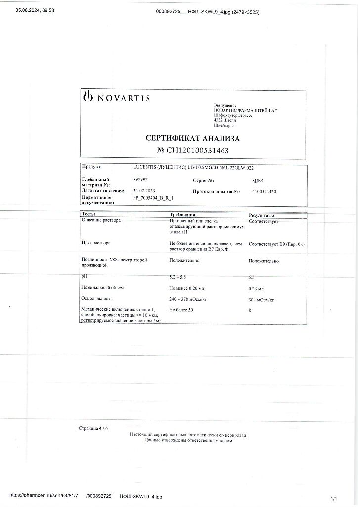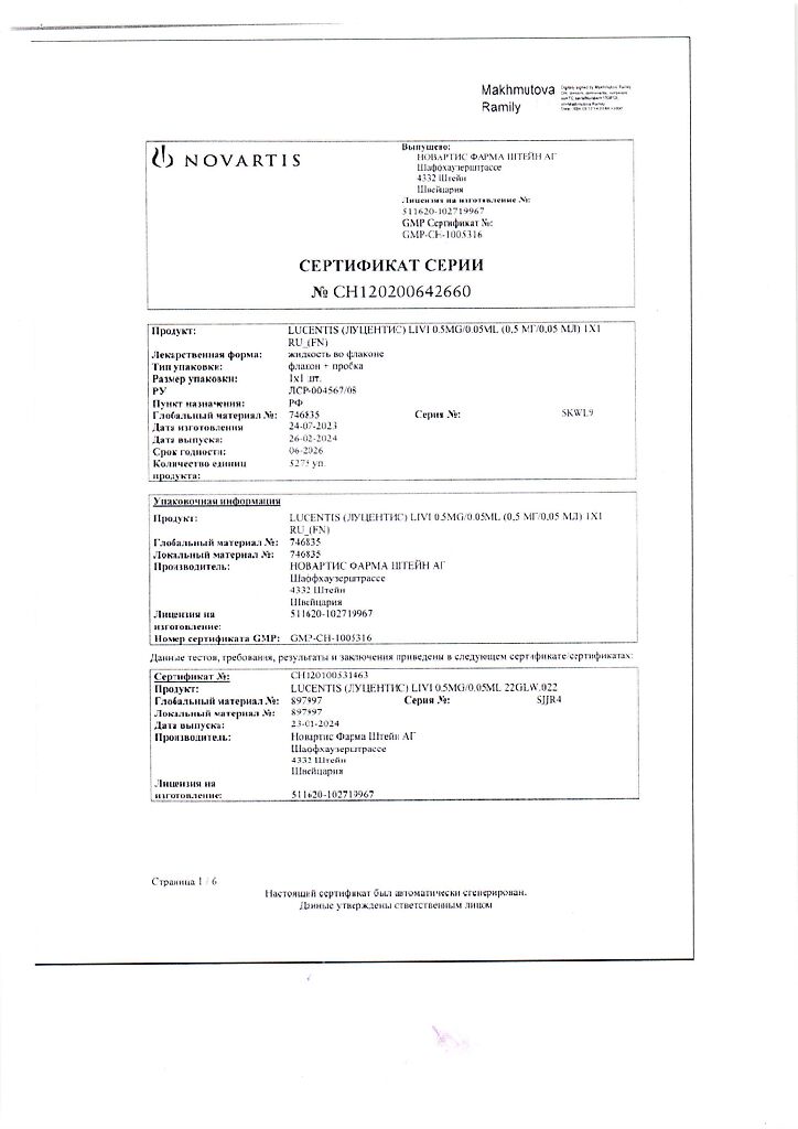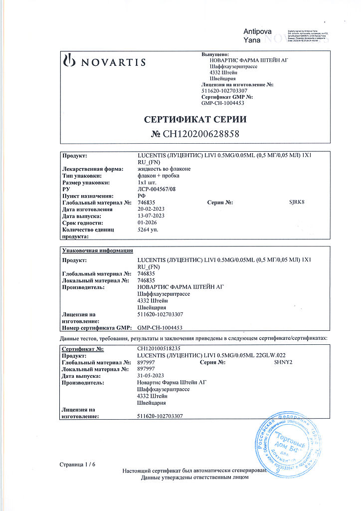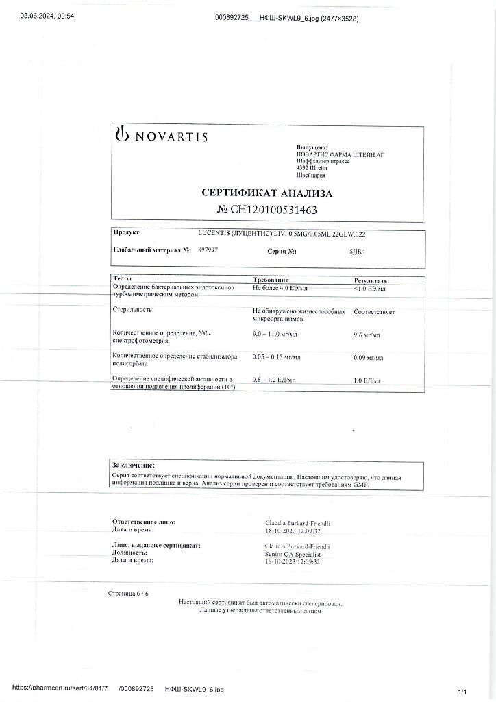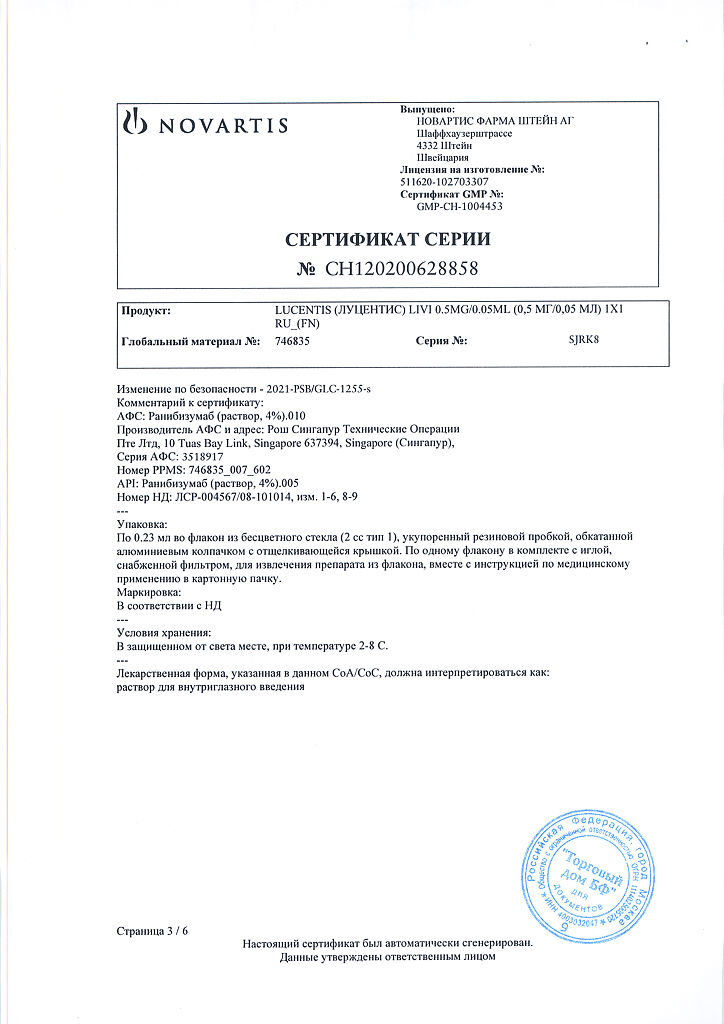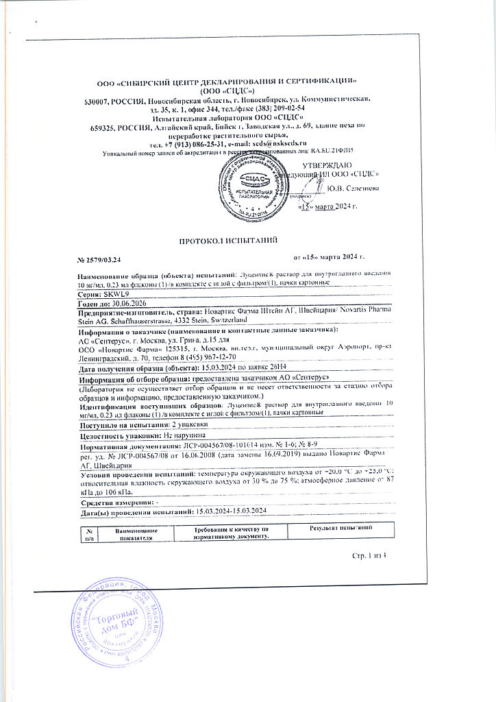 Луцентис раствор для внутриглазного введ 10 мг/мл 0,23 мл
