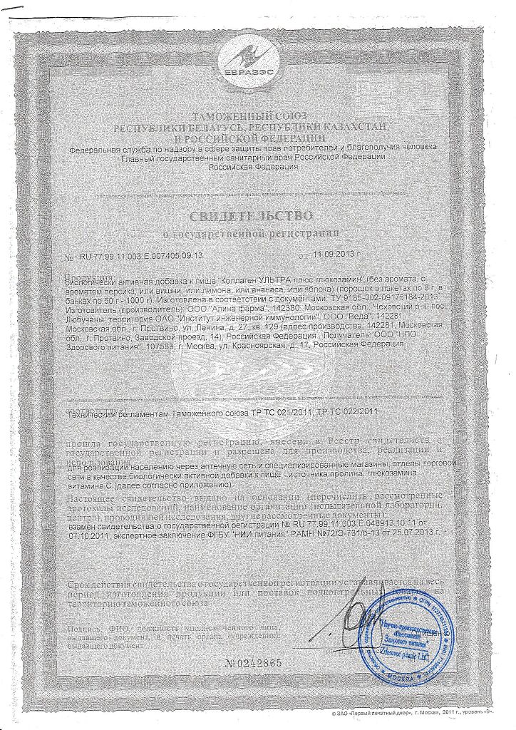 Документы Коллаген Ультра плюс Глюкозамин