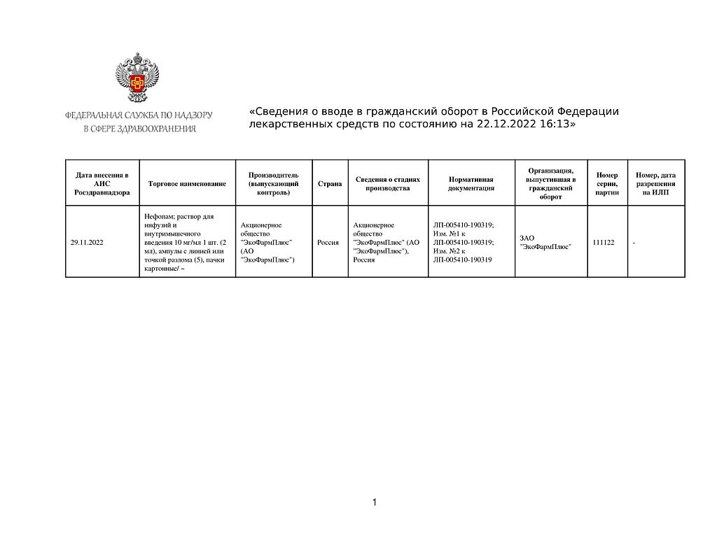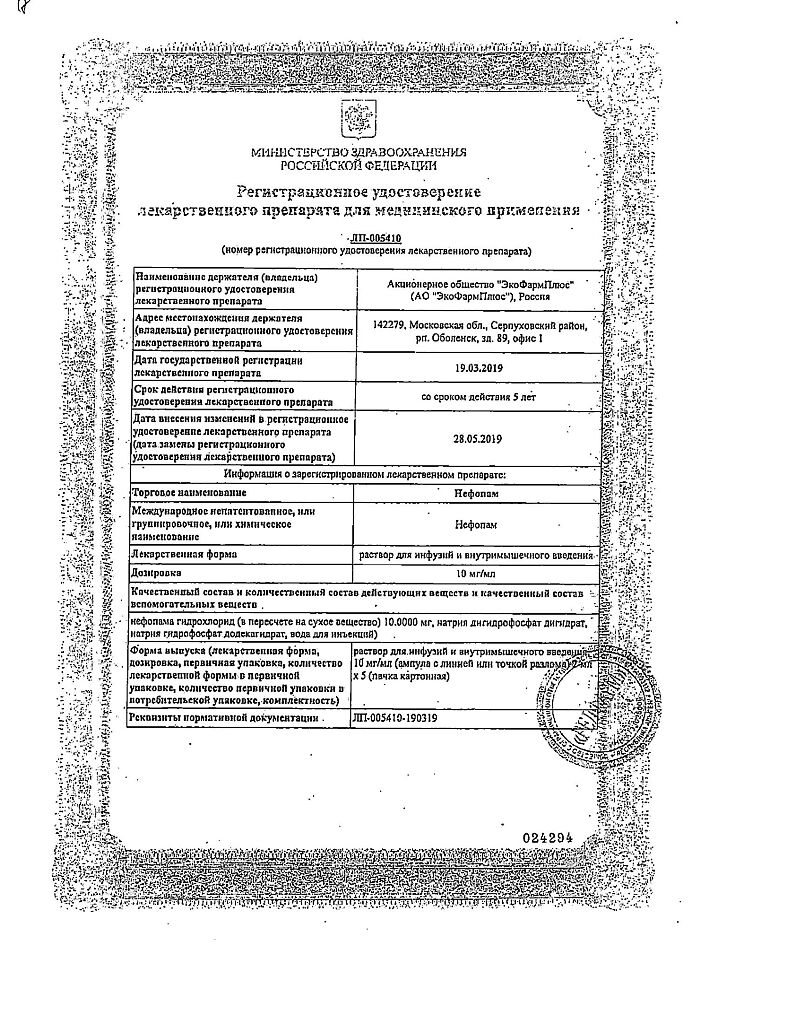 Нефопам раствор для инфузий и в/м введ 10 мг/мл 2 мл 5 шт
