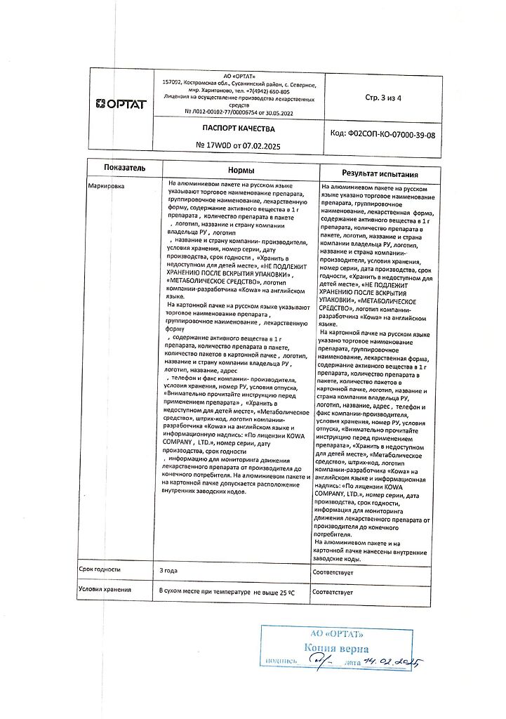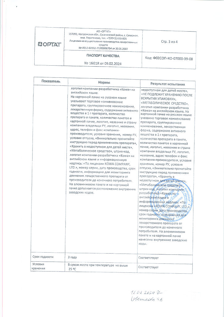 • Хранить в сухом месте при температуре не выше 25°С. Хранить в недоступном для детей месте.