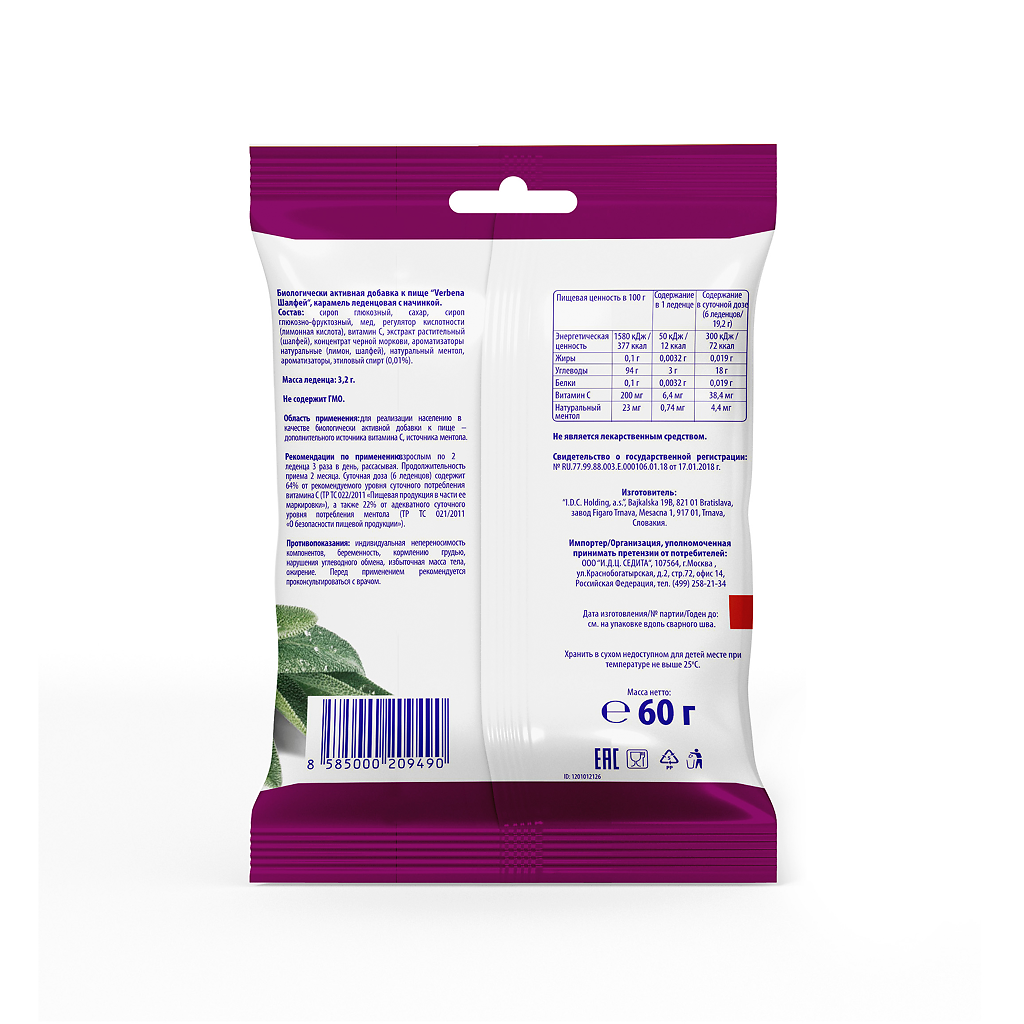 Документы Вербена / Verbena Шалфей карамель леденцовая с начинкой массой 3,2 г 1 уп