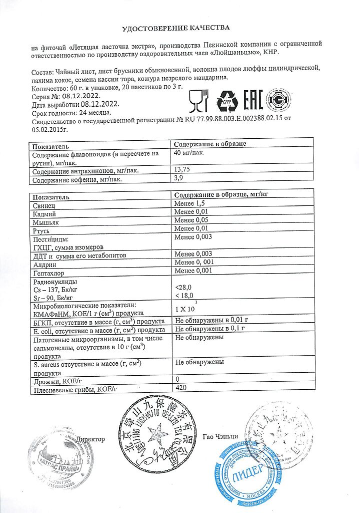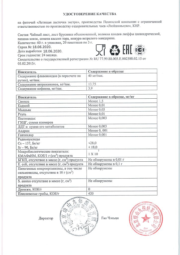 Чайный лист, лист брусники обыкновенной, пахима кокоса, семена кассии, кожура незрелого мандарина, волокна плодов люфы цилиндрической.