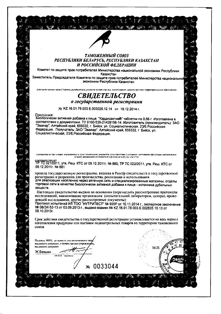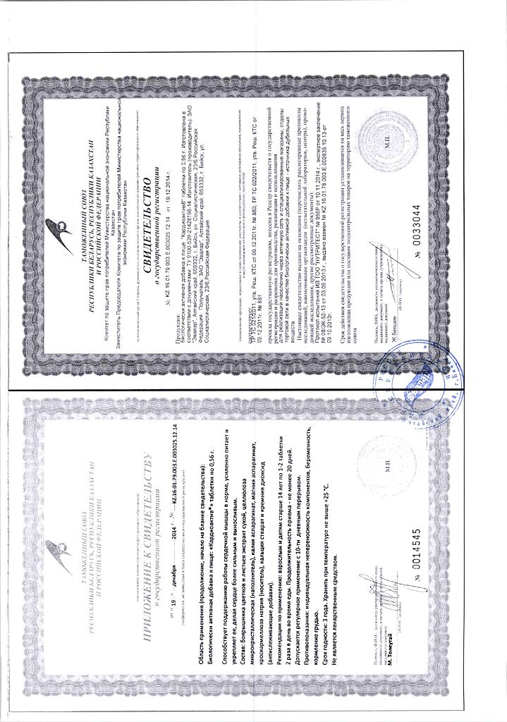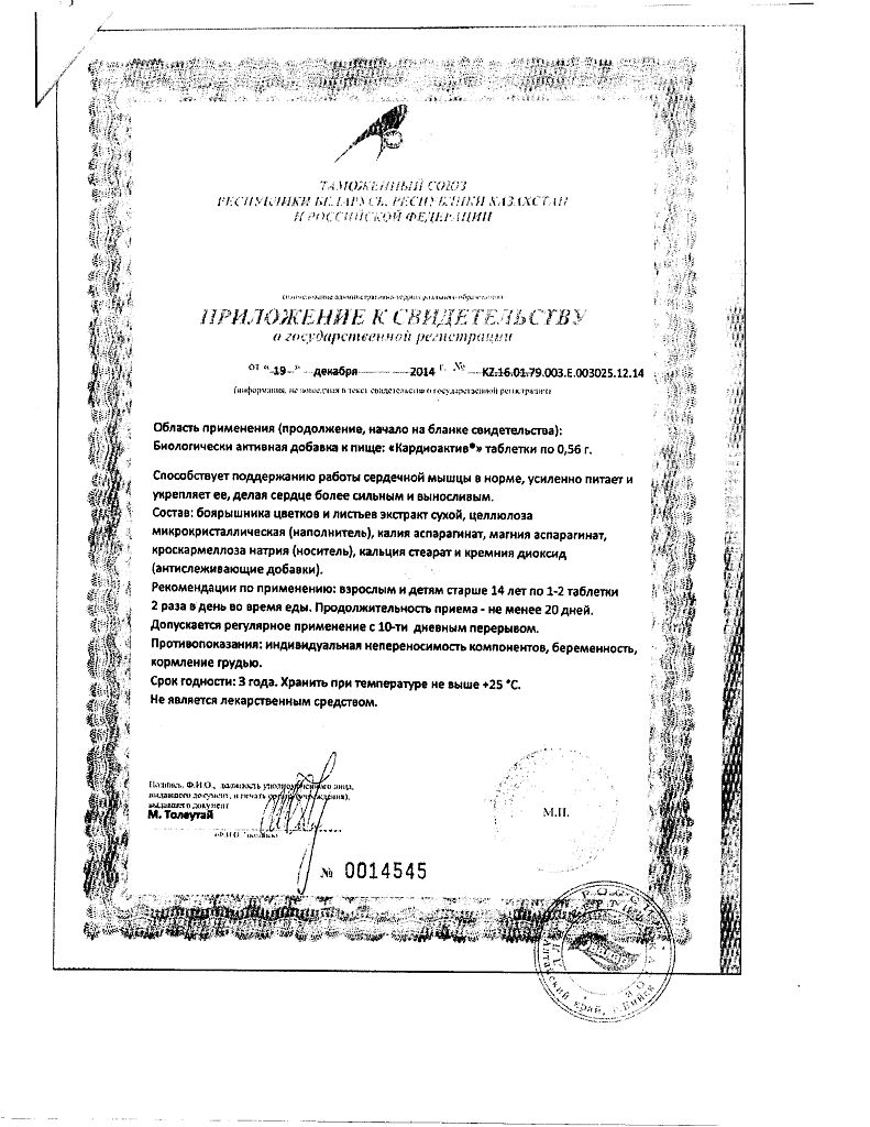 Документы Кардиоактив Боярышник таблетки по 0,56 г 40 шт
