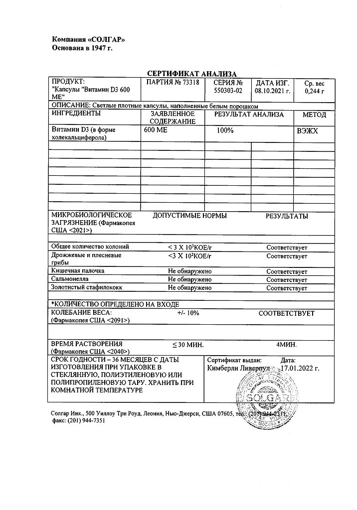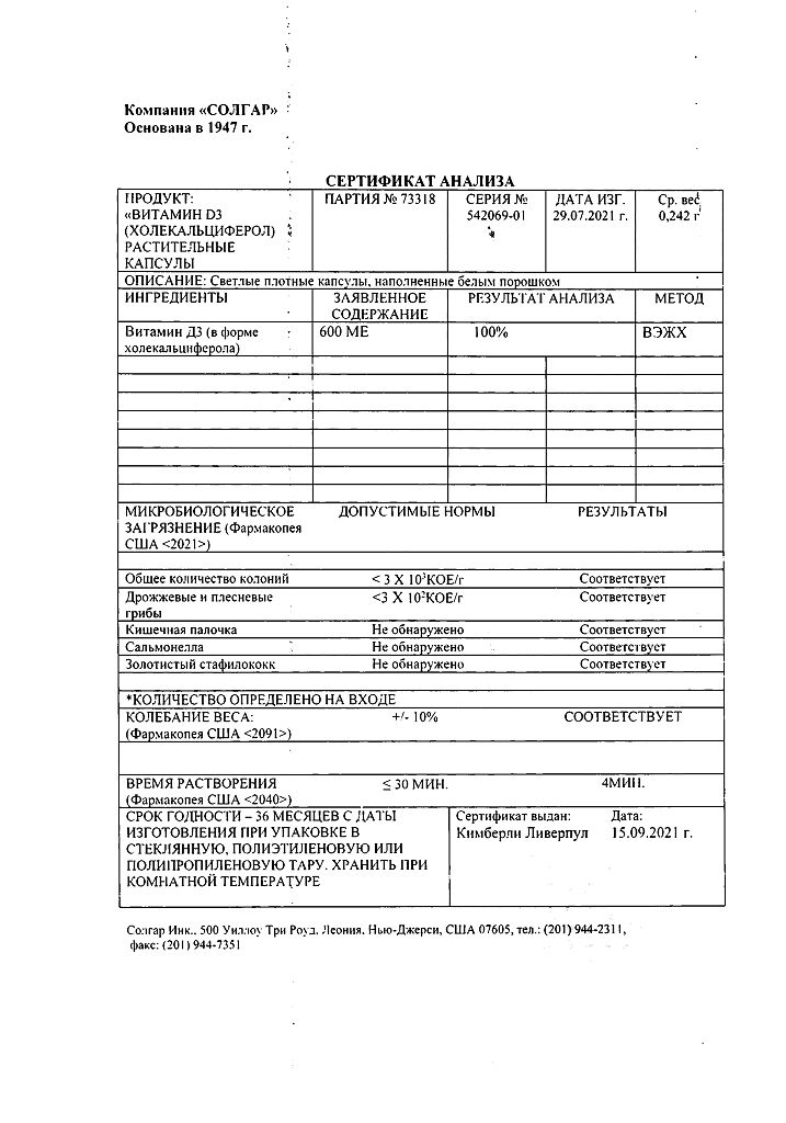 Производитель: Solgar Inc., США