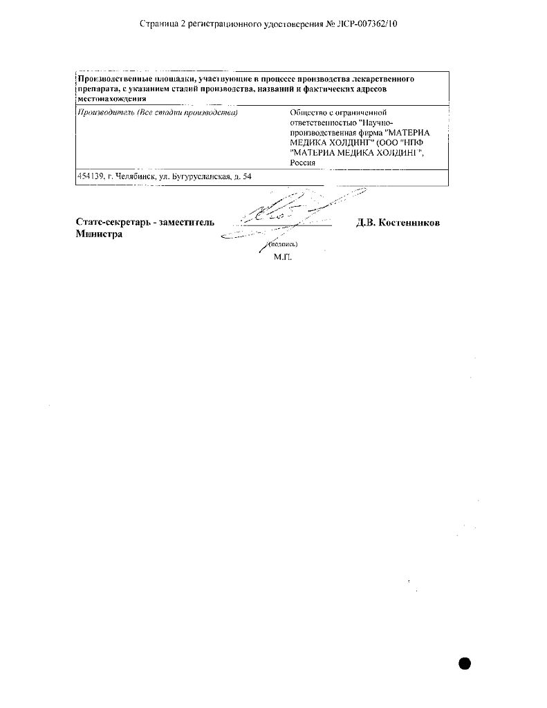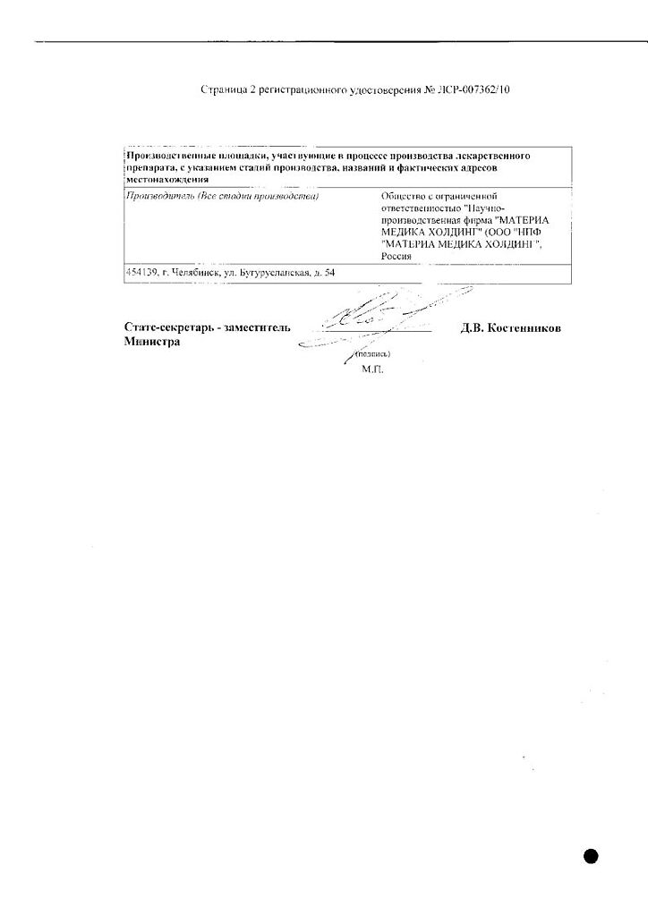Вспомогательные вещества: лактозы моногидрат, целлюлоза микрокристаллическая, магния стеарат.