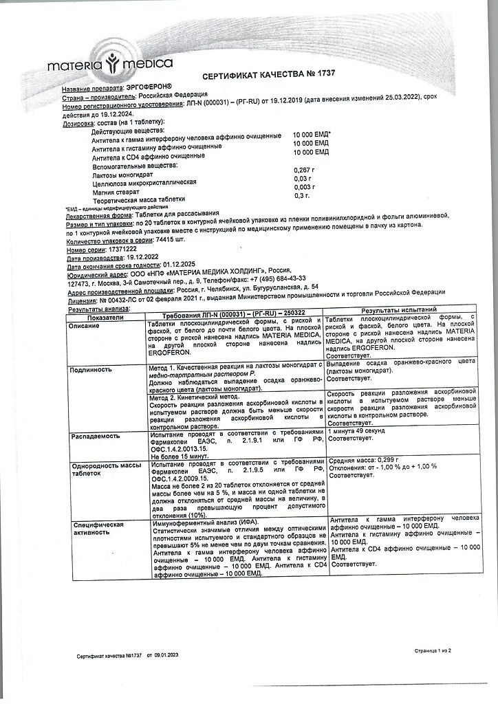 Спектр фармакологической активности препарата Эргоферон® включает в себя противовирусную, иммуномодулирующую, антигистаминную, противовоспалительную.