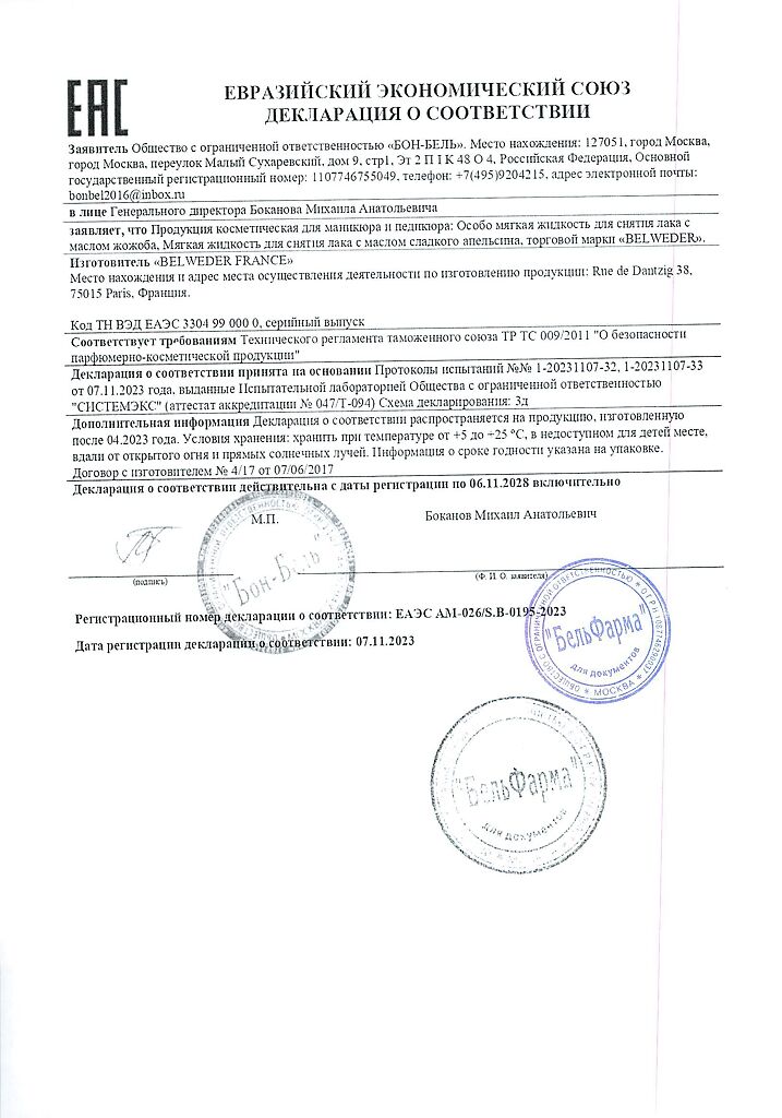 Документы Belweder Жидкость для снятия лака с маслом жожоба 60 мл 1 шт