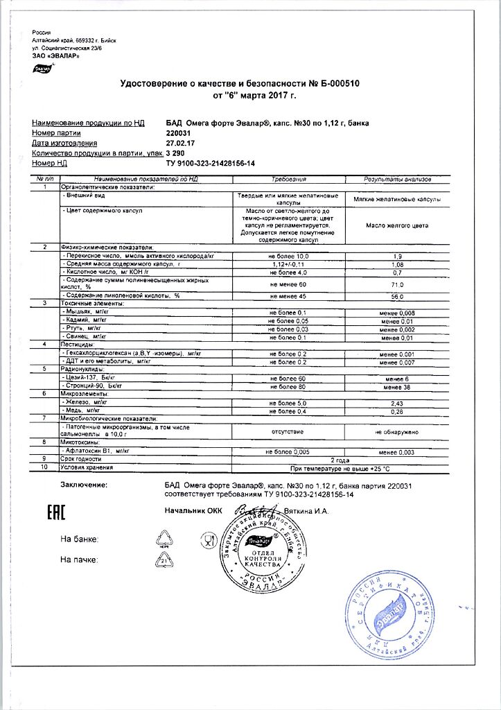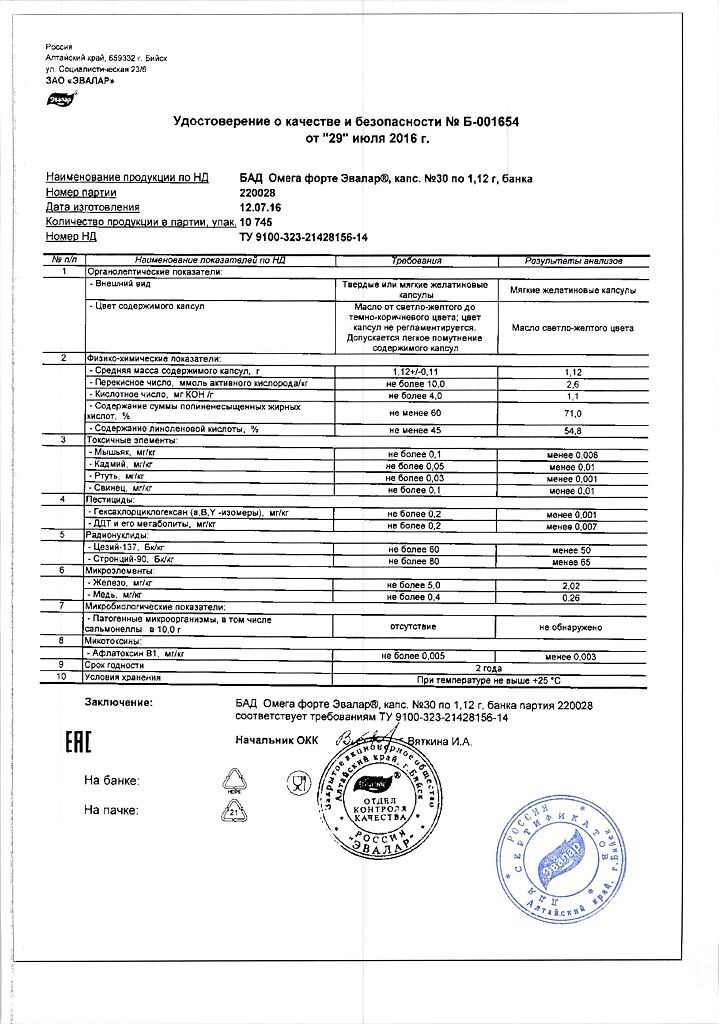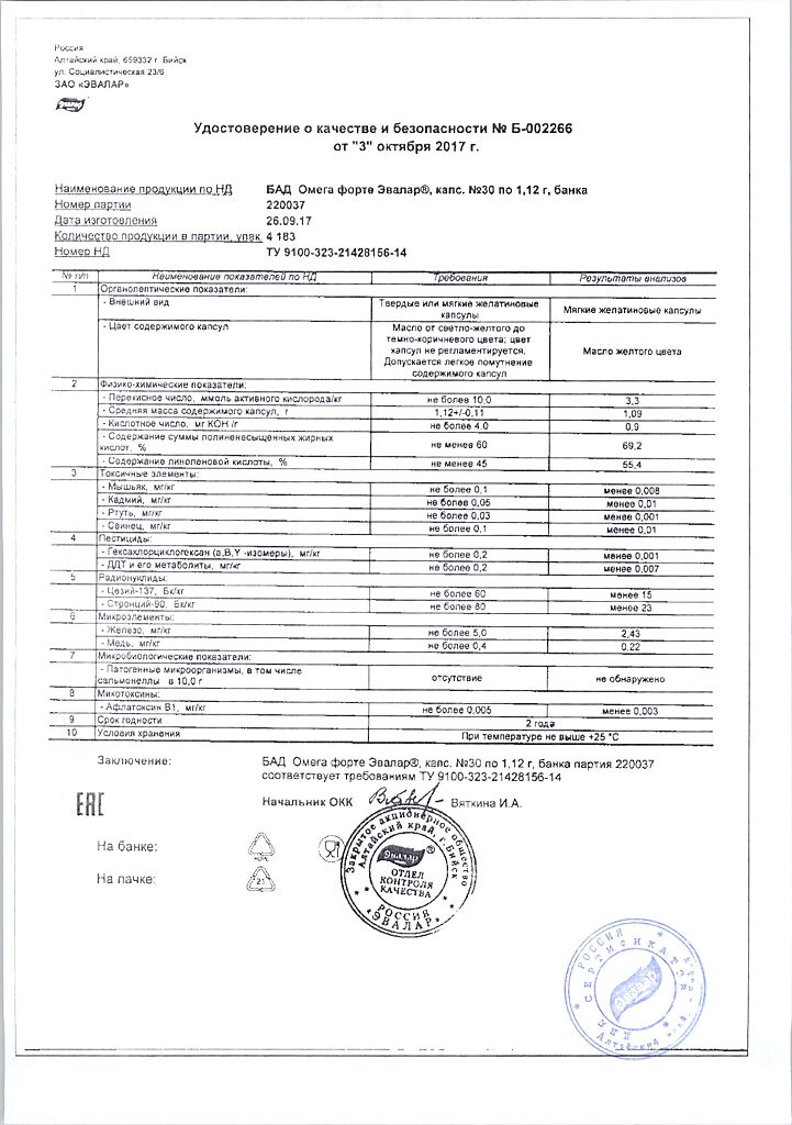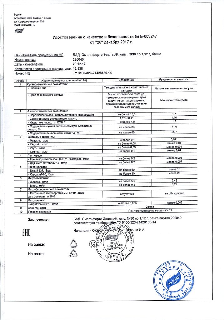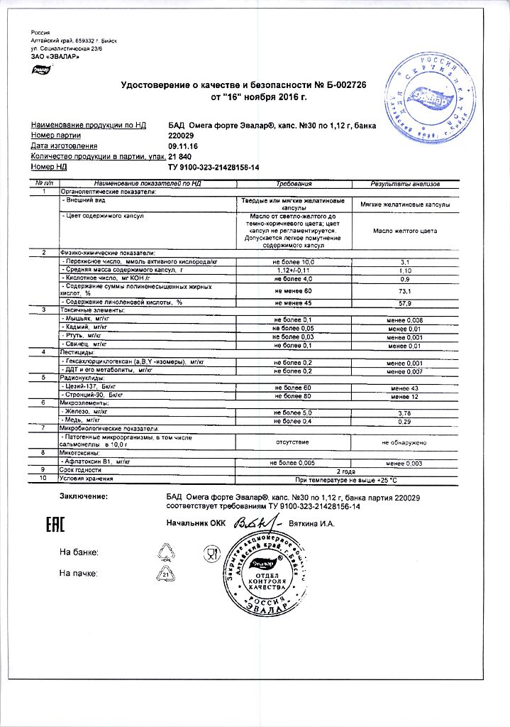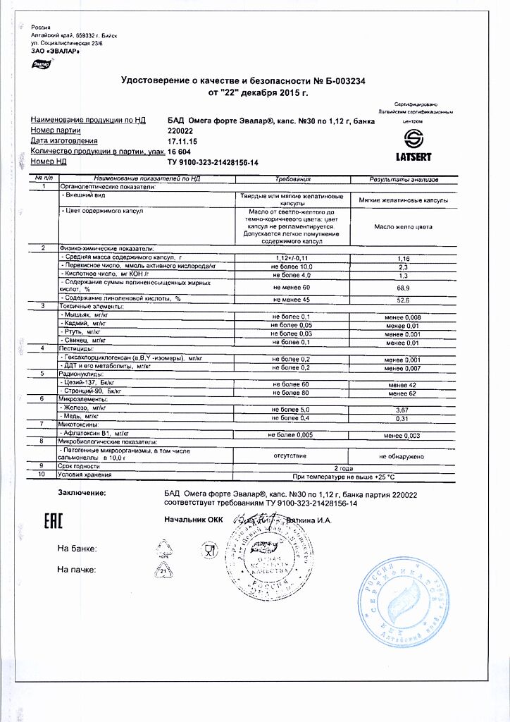 Документы Омега Форте Эвалар капсулы массой 1,12 г 30 шт