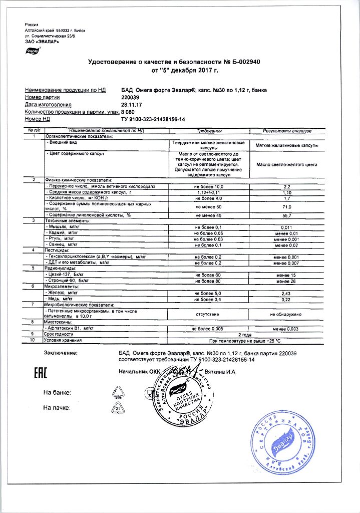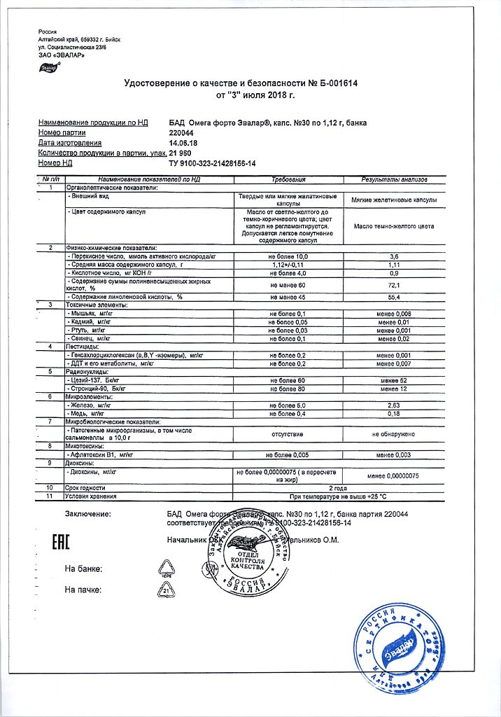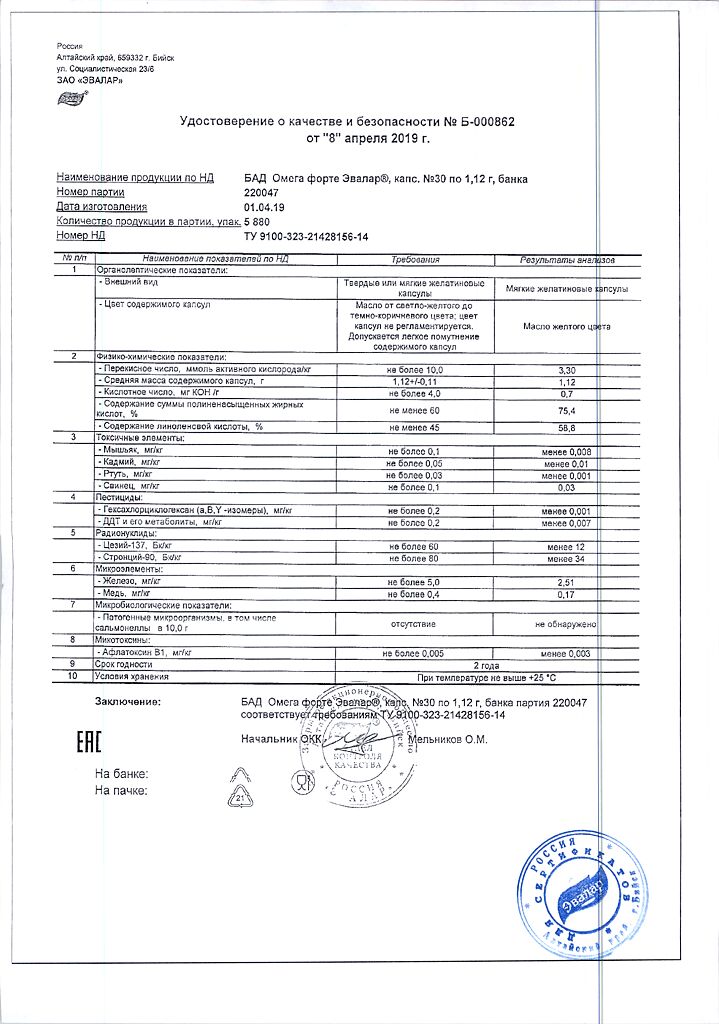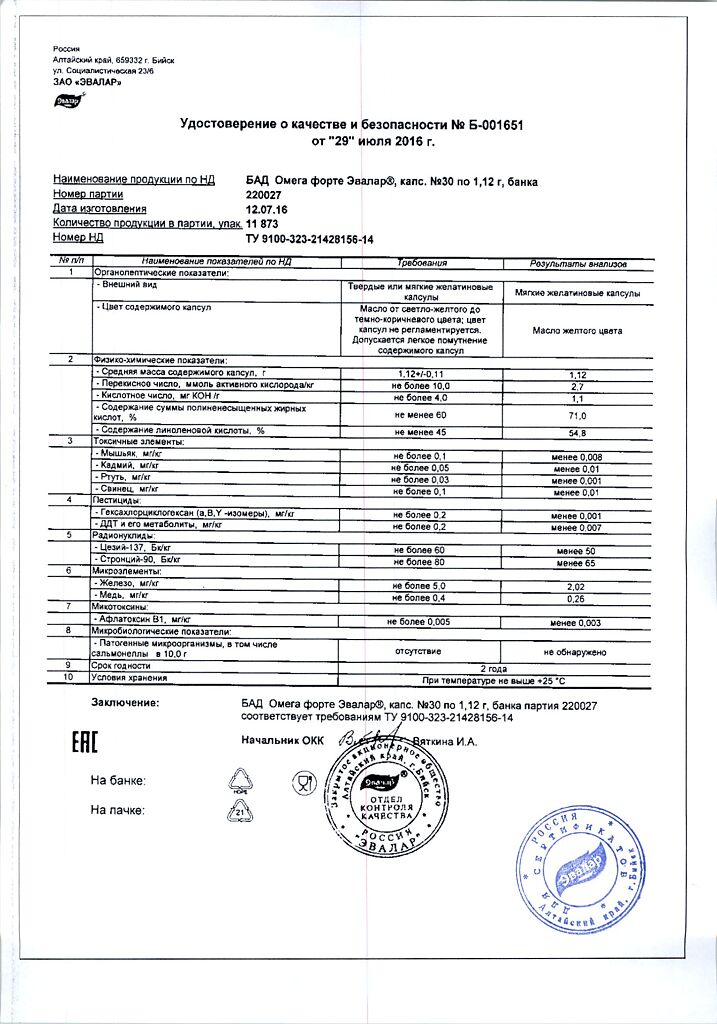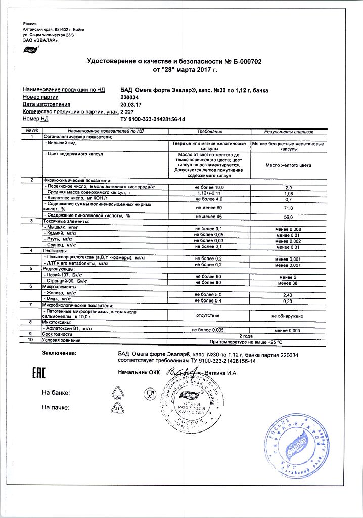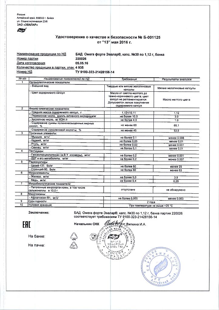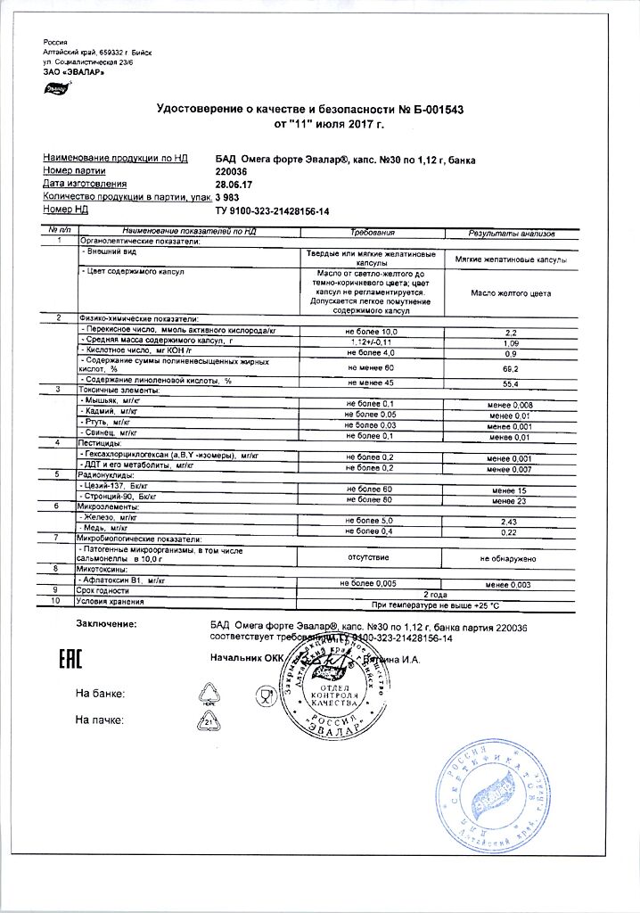 Документы Омега Форте Эвалар капсулы массой 1,12 г 30 шт