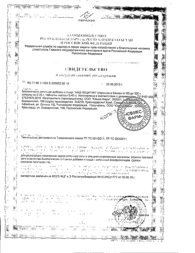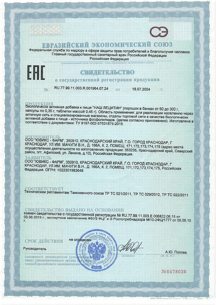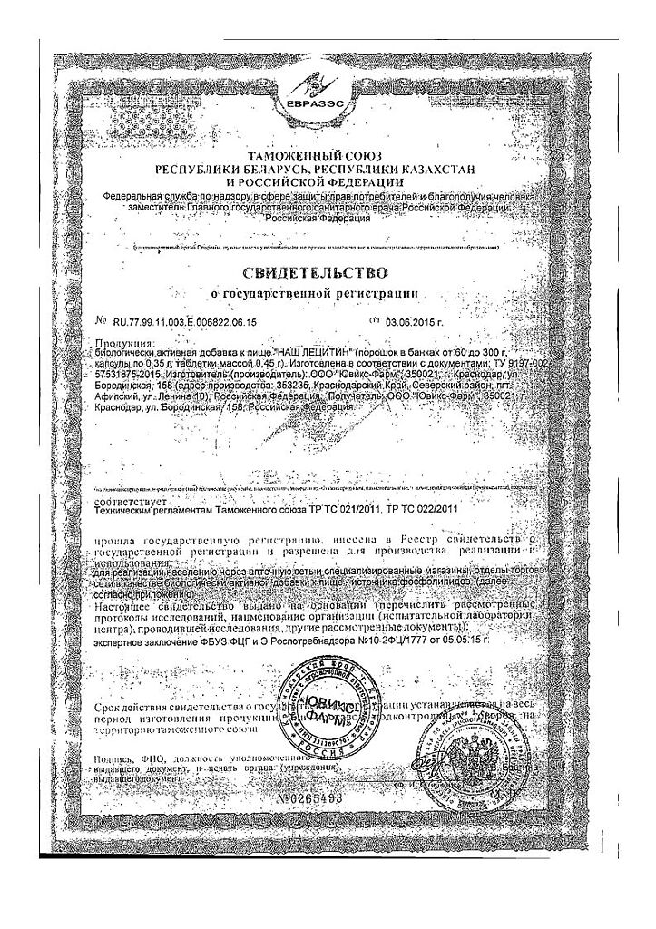 Биологически активные вещества, %, не менее: фосфолипидов - 75,0.