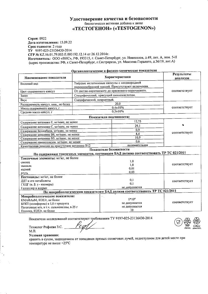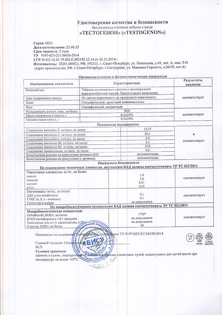 Документы Тестогенон / Testogenon капсулы массой 0,5 г 30 шт