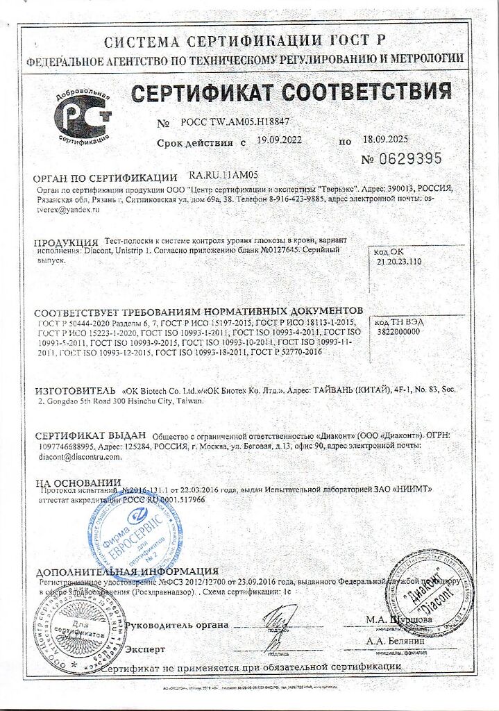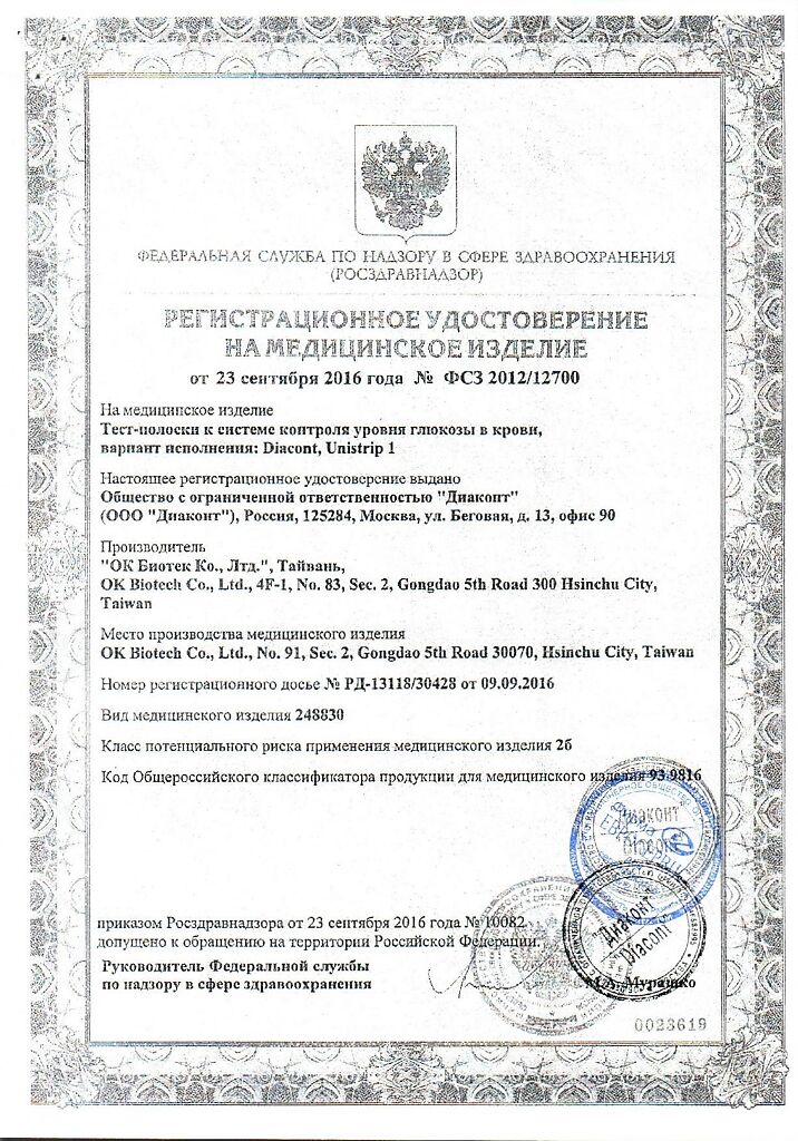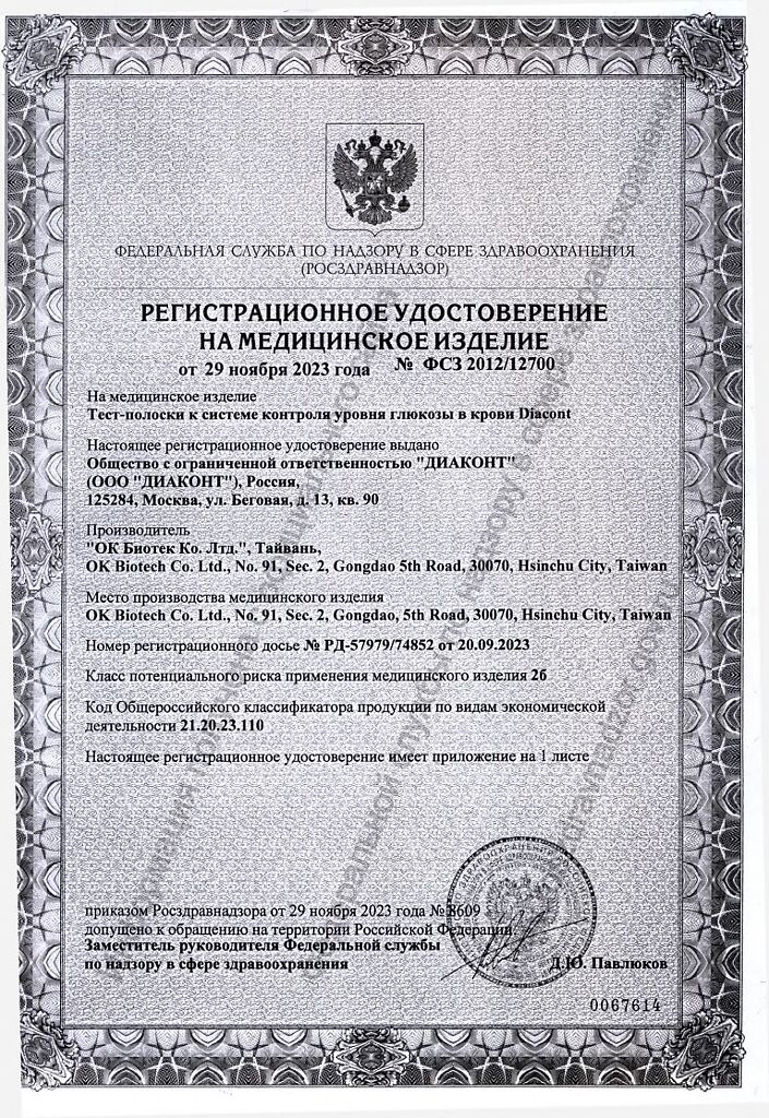 Документы Diacont тест-полоски для глюкометра 50 шт