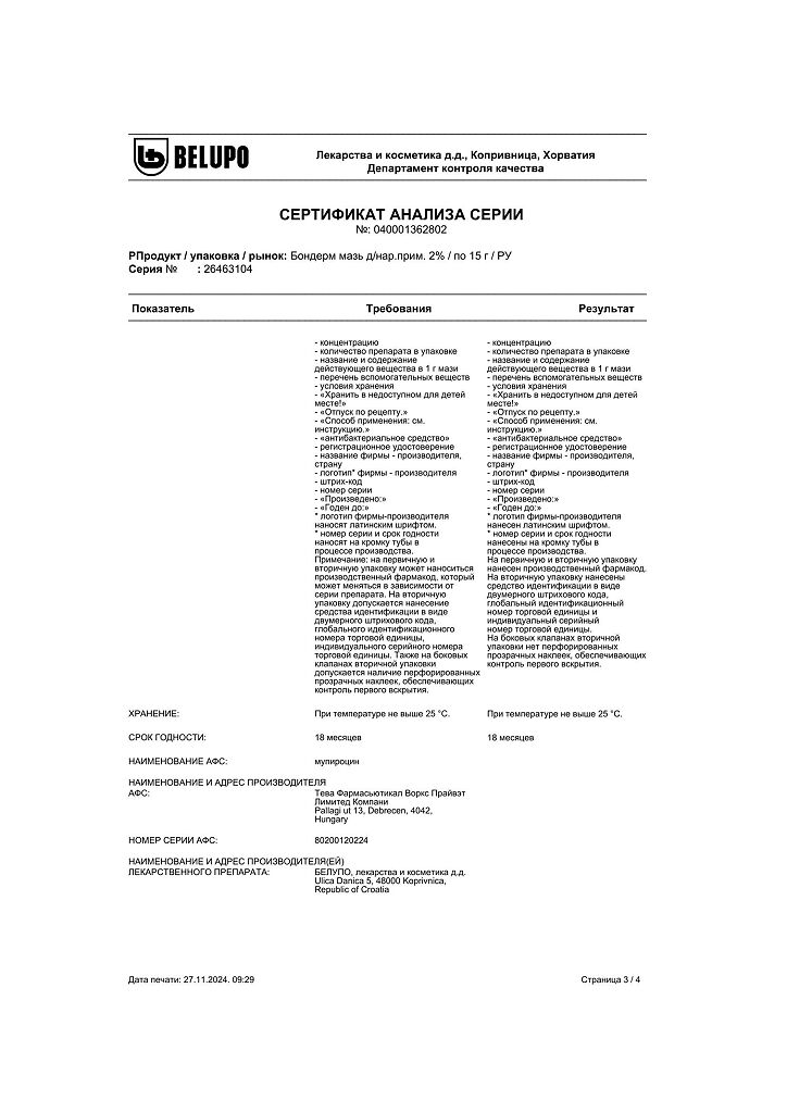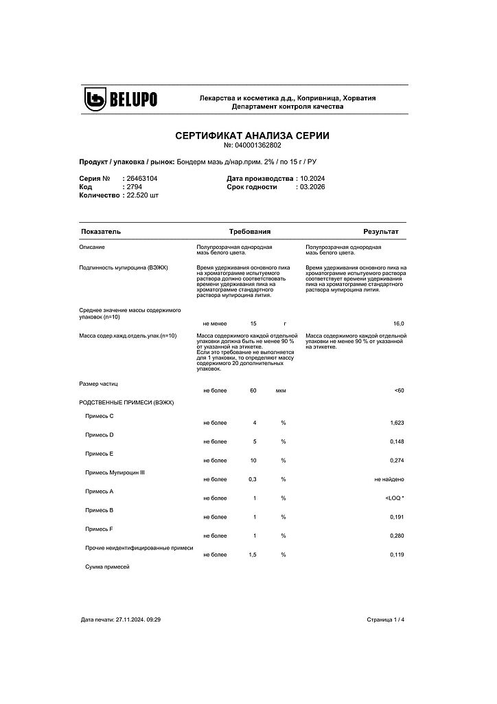Производитель: Белупо,лекарства и косметика д.д, Хорватия
