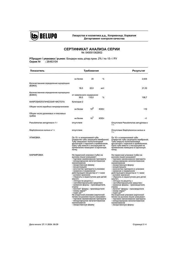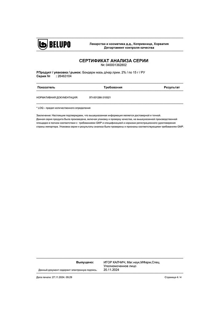 Документы Бондерм мазь для наружного применения 2 % 15 г 1 шт