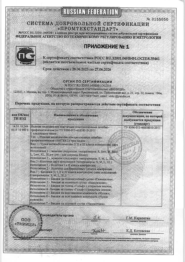 • Компрессионные чулки способствуют предотвращению тромбофлебита – заболевания воспаления стенок вен. При правильном назначении врача и использования противоварикозных чулок 1 класса компрессии Интекс, как одним из самых распространённых методов, есть возможность лечения варикозного расширения вен без оперативного вмешательства.