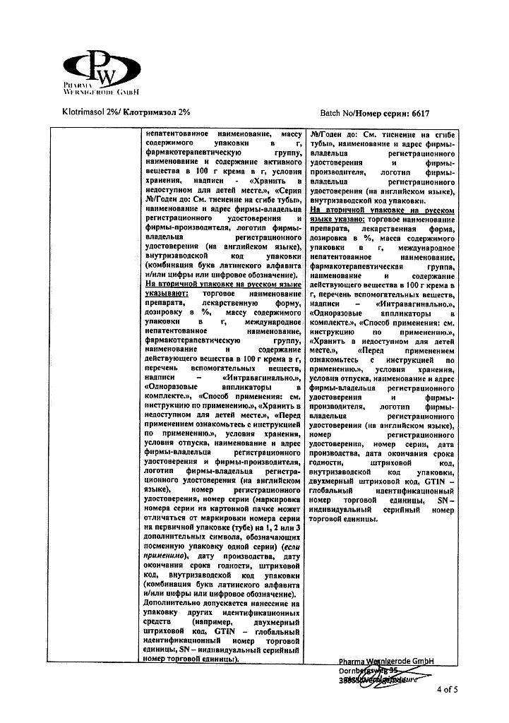 Препарат нельзя применять во время менструации, лечение целесообразно начинать после менструации. При одновременной инфекции половых губ и прилегающих участков (кандидозный вульвит) следует дополнительно проводить местное лечение препаратом клотримазол. В период беременности лечение вагинальным кремом проводят без аппликатора.