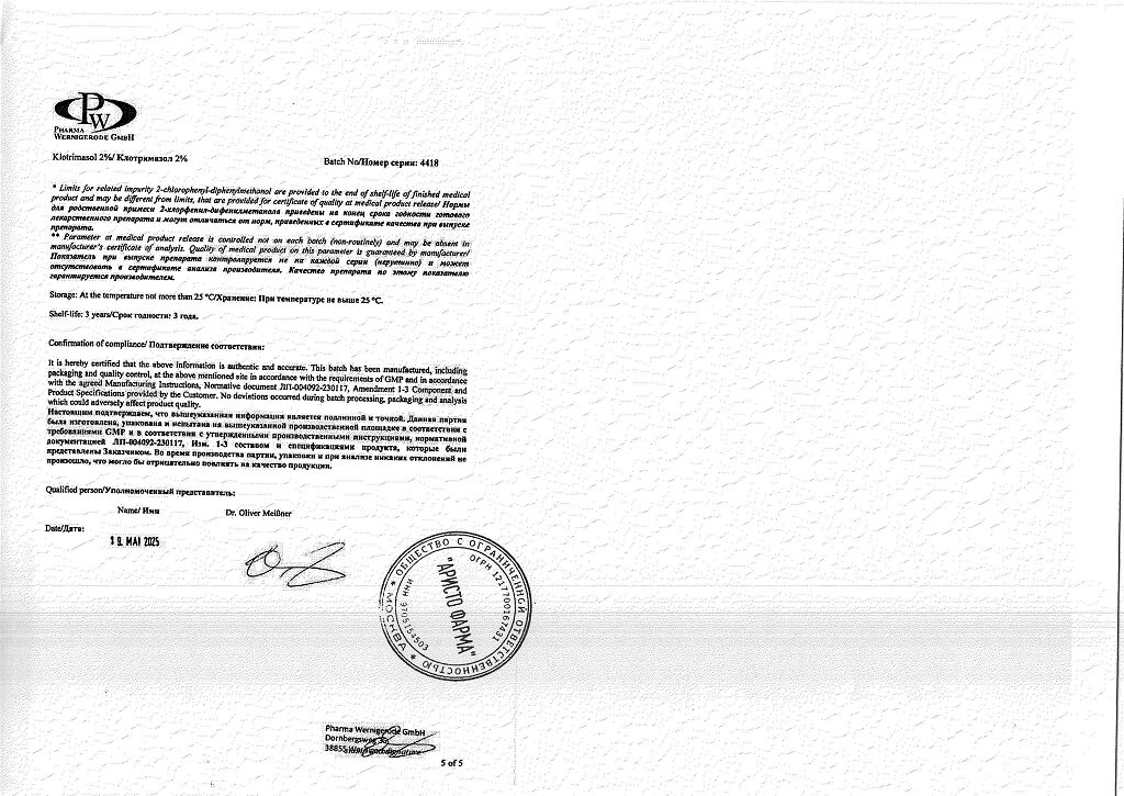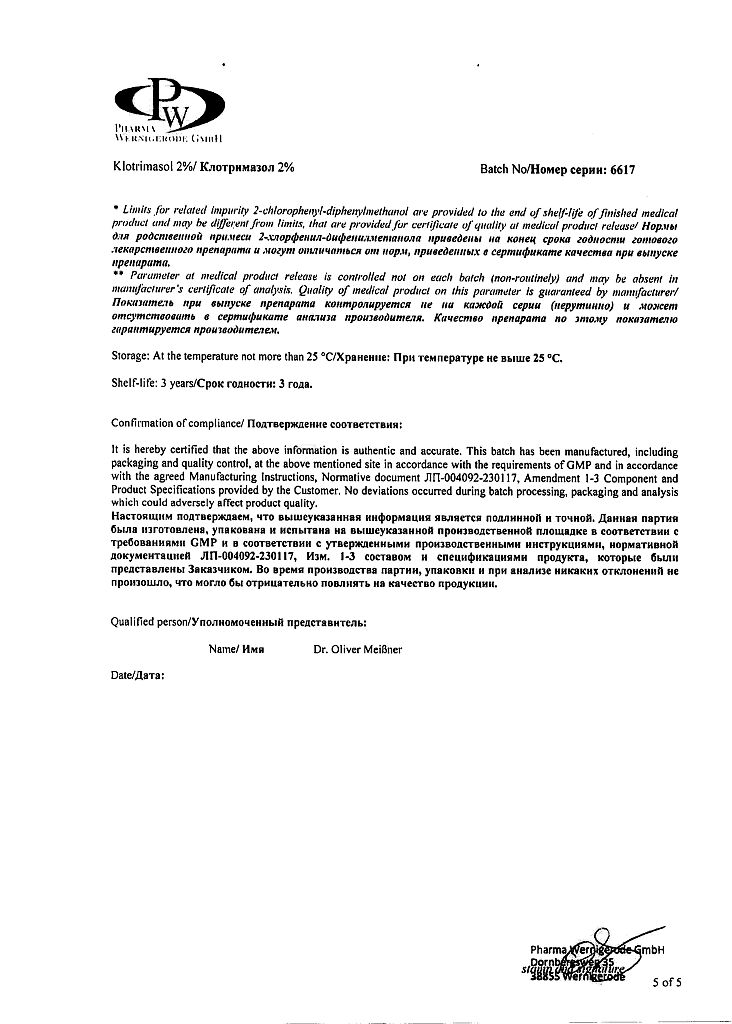 Повышенная чувствительность к клотримазолу или другим компонентам препарата, особенно к цетостеариловому спирту;