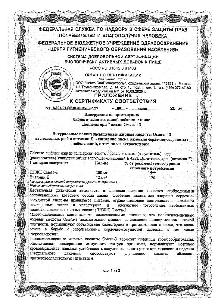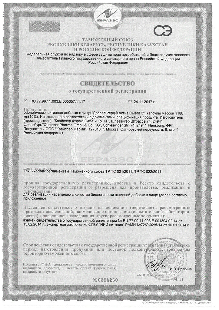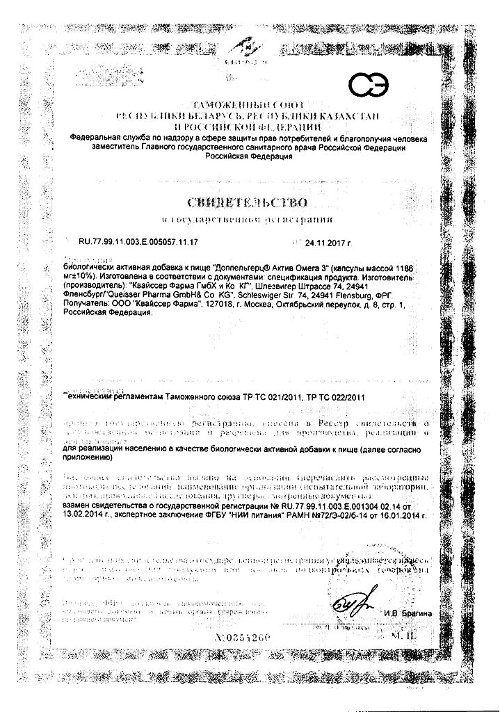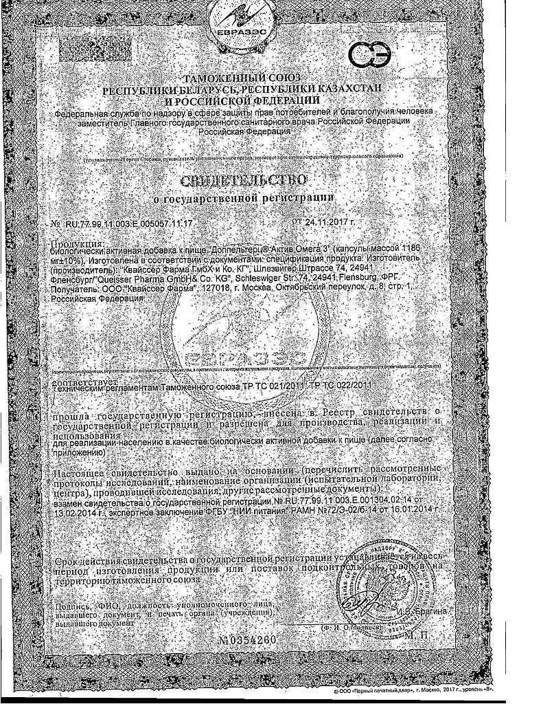 Документы Доппельгерц Актив Омега-3 капсулы массой 1186 мг 120 шт
