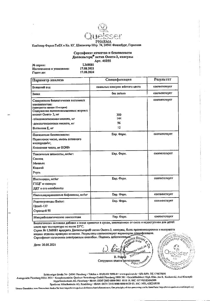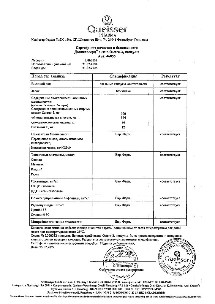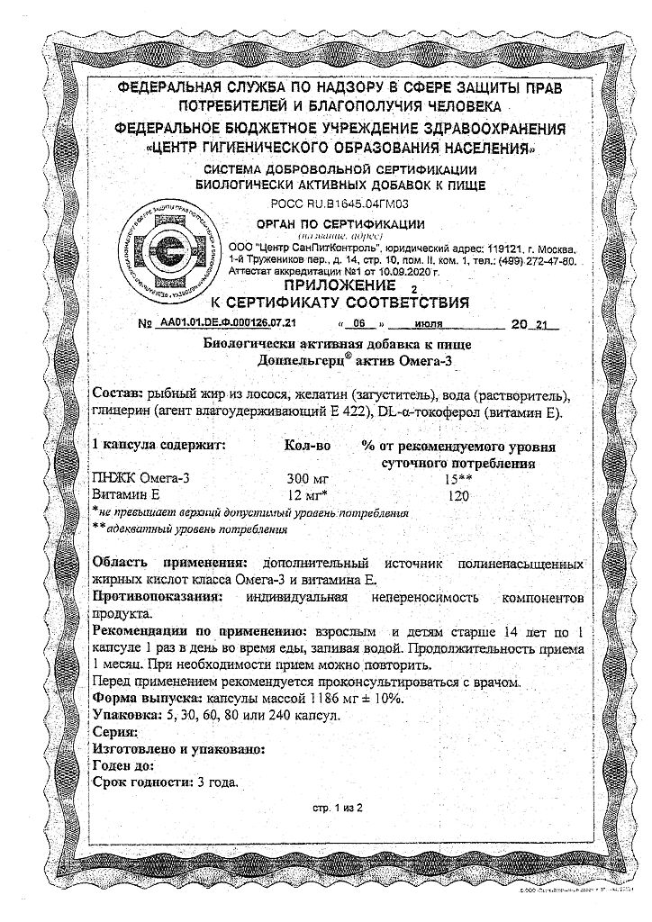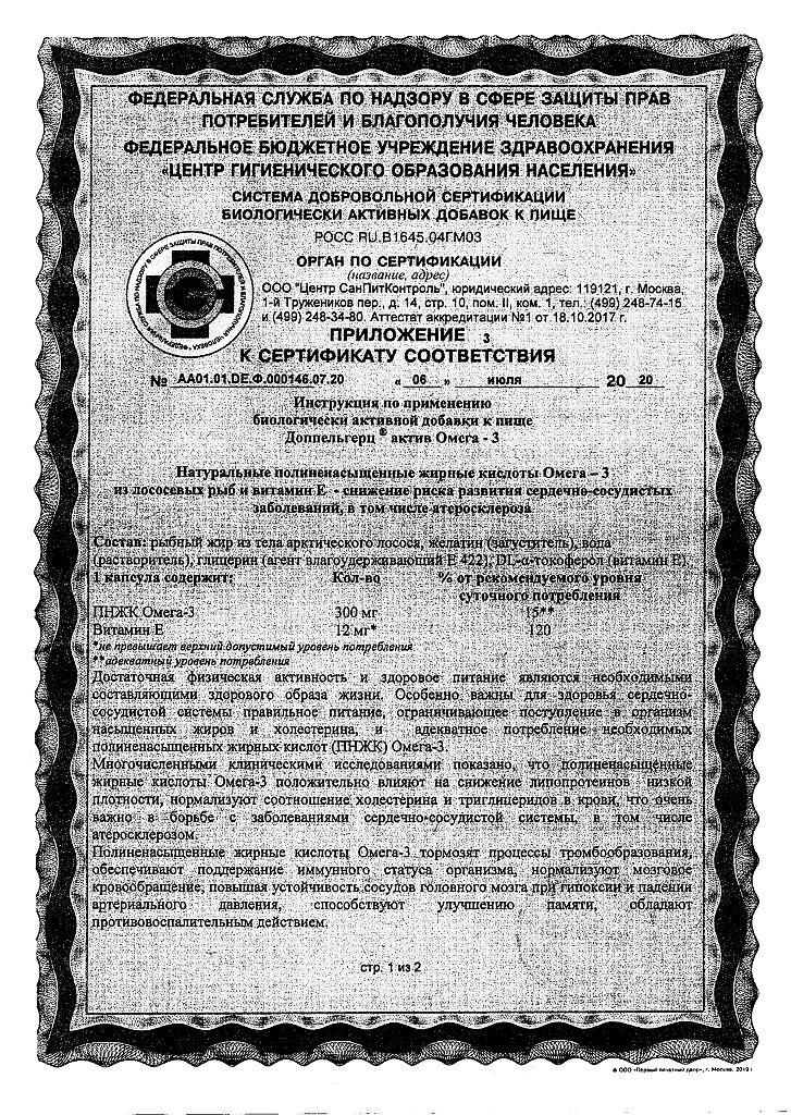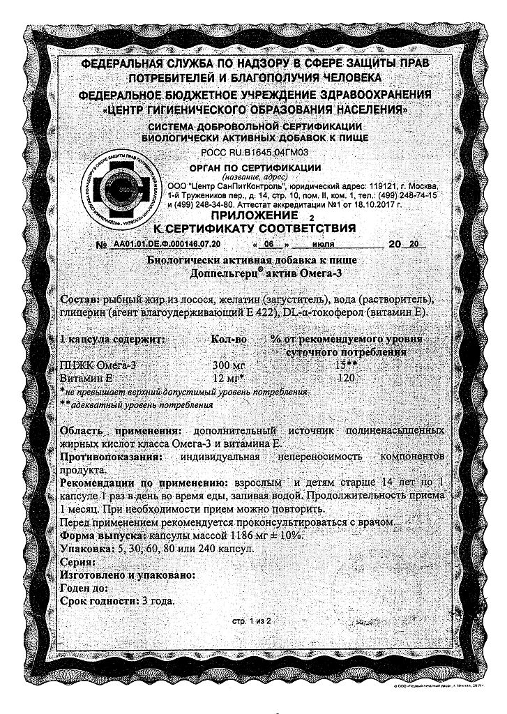 Документы Доппельгерц Актив Омега-3 капсулы массой 1186 мг 120 шт