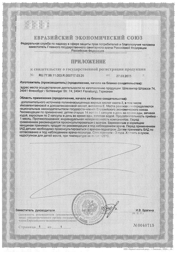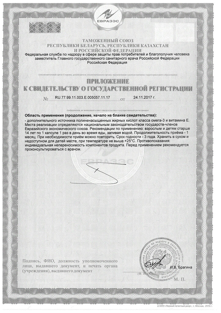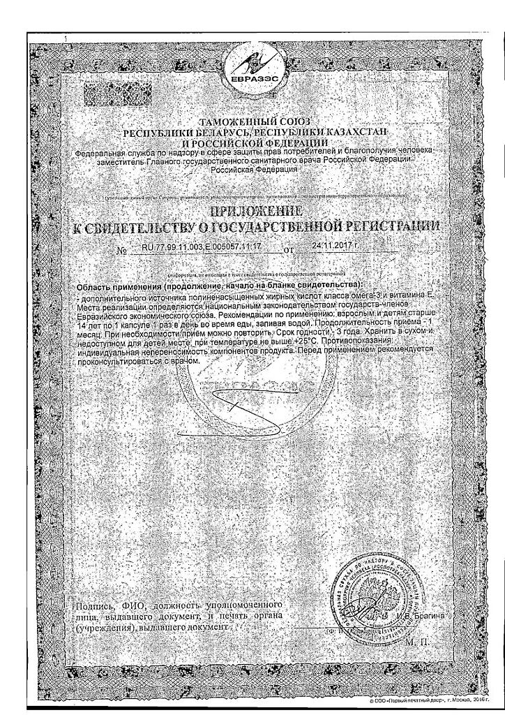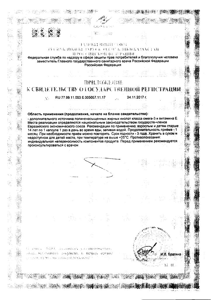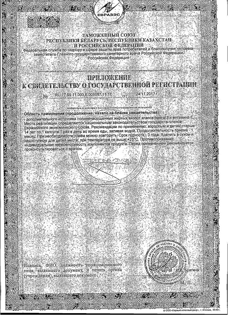 Дополнительный источник полиненасыщенных жирных кислот класса Омега-3 и витамина Е.