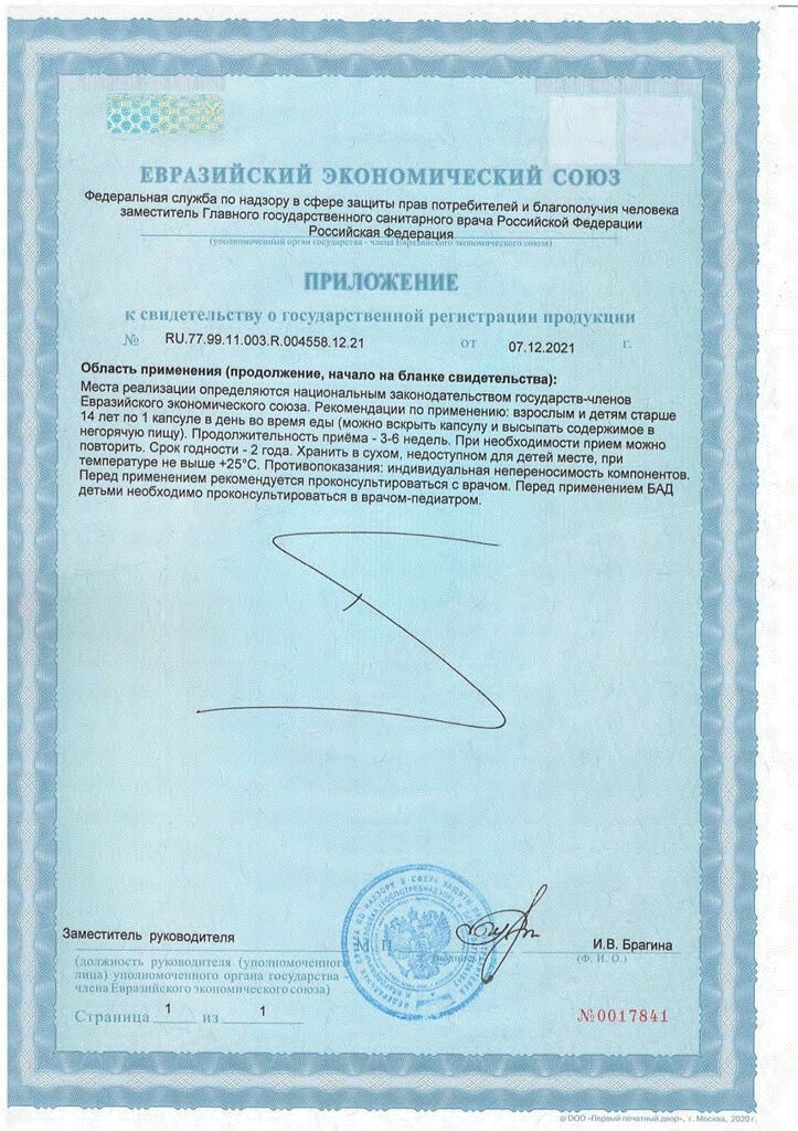 Взрослым и детям старше 3 лет по 1 капсуле в день во время еды (можно вскрыть капсулу и высыпать содержимое в негорячую пищу). Продолжительность приема - 3-6 недель. При необходимости прием можно повторить.