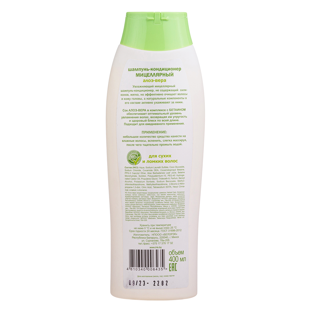 Iris Herbal Care Шампунь-кондиционер Мицеллярный Алоэ-вера 400 мл 1 шт: 31 oтзыв покупателей и фармацевтов