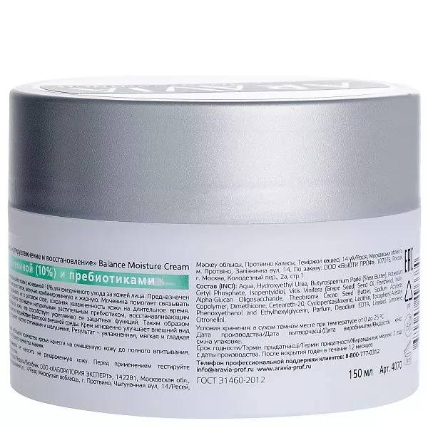 Aravia Professional Крем для лица суперувлажнение и восстановление с мочевиной (10%) и пребиотиками Balance Moisture Cream 150 мл 1 шт: 65 отзывов покупателей и фармацевтов