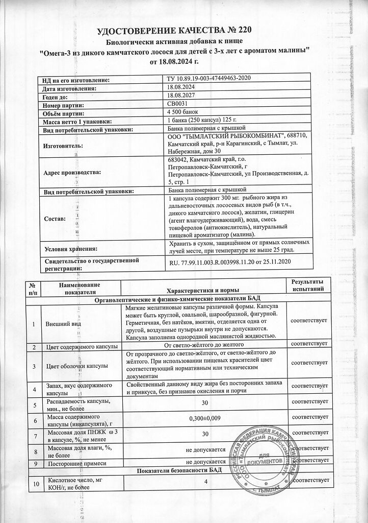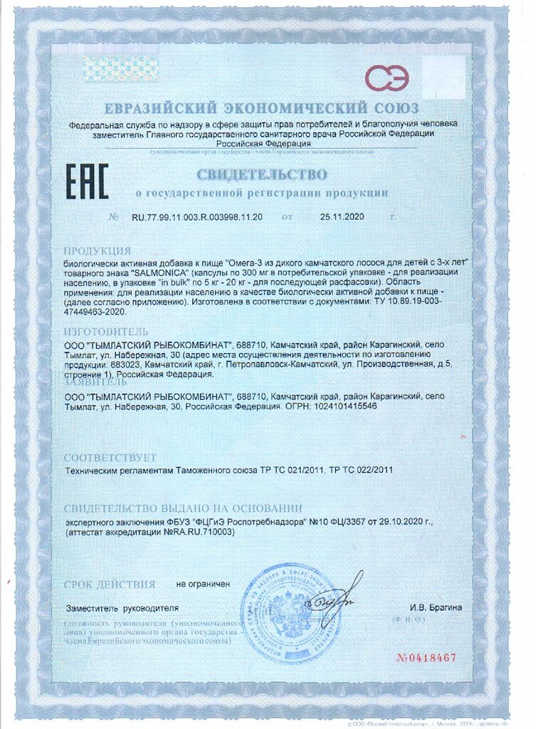 Документы Омега-3 из дикого камчатского лосося для детей с 3-х лет Salmonica мягкие желатиновые капсулы по 300 мг 250 шт