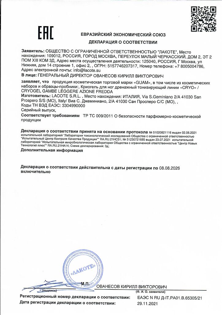 Криогель приносит мгновенное облегчение уставшим ногам, приятно охлаждая кожу, успокаивает ее, устраняет отеки и снижает болевые ощущения. Проявляет выраженное противоотечное действие, укрепляет стенки вен и капилляров, уменьшает симптом «натяжения тканей» кожи благодаря венопротекторным свойствам сока Водянки Черной. Комплексное действие экстрактов микроводорослей Хлорелла и Красного Винограда мгновенное облегчают симптомы «уставших ног» на ступнях, лодыжках и бедрах, устраняют отечность. Гель идеально подходит для чувствительной кожи, нуждающейся в улучшении трофики, стимуляции кровообращения и усилении лимфодренажа, что позволяет в комплексе избавиться от избыточной застойной жидкости в тканях и клетках кожи.