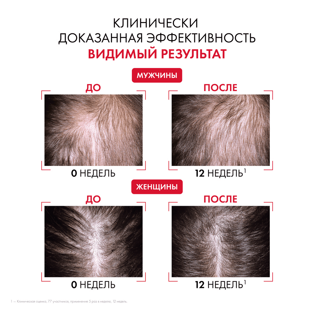 Формула, обогащенная аминексилом 1,5% и активным концентратом с экстрактом имбиря и ниацинамидом, уменьшает выпадение и улучшает рост волос, усиливая клеточную активность. Клинически доказано: + 14 000 волос*.